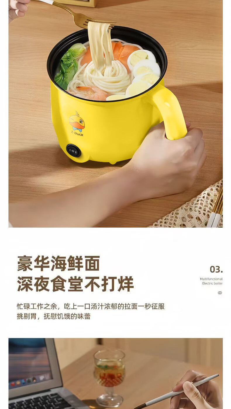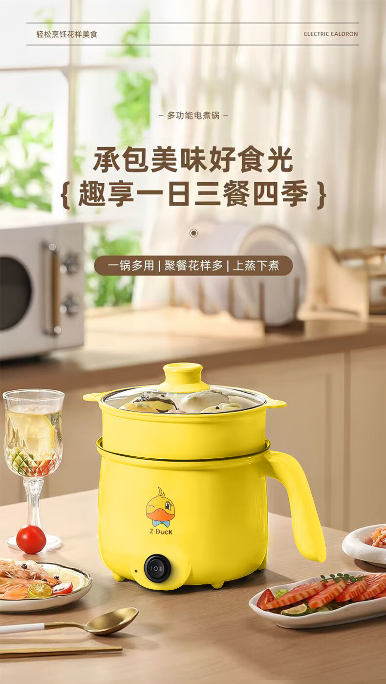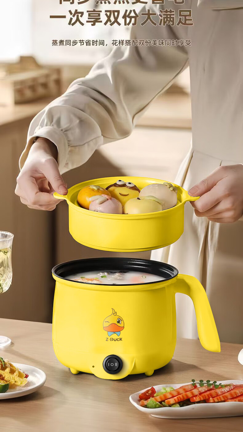 电煮锅电锅小电锅电炒锅电热锅多功能一锅多用宿舍电煮锅电炖锅火锅1-2人蒸煮一体电蒸锅火锅锅学生泡面电火 泡面碗【白色】大号