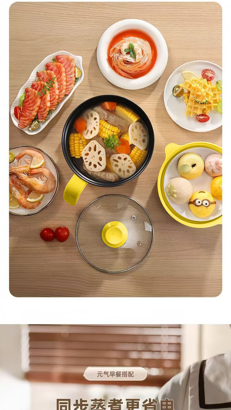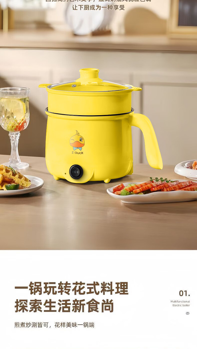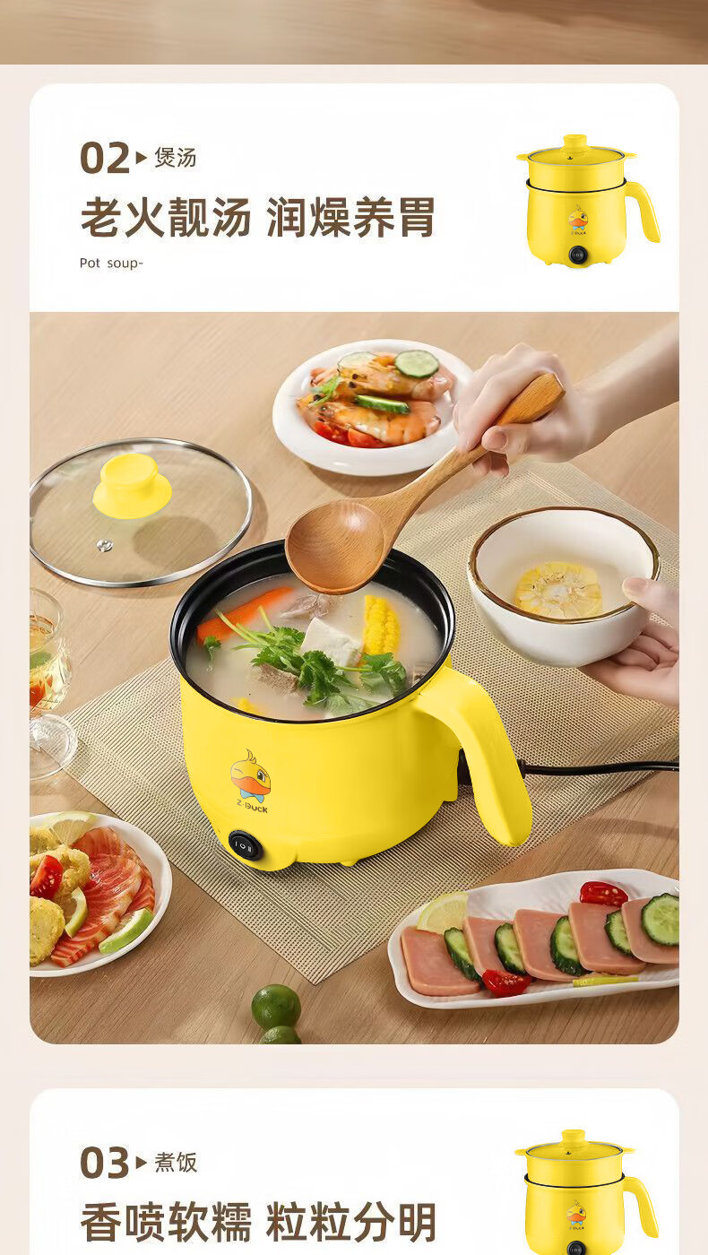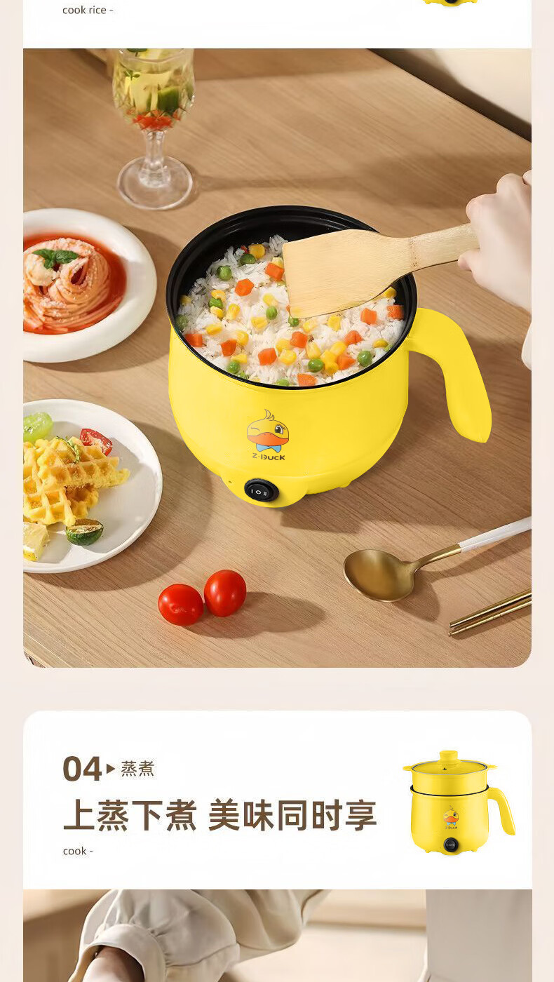 电煮锅电锅小电锅电炒锅电热锅多功能一锅多用宿舍电煮锅电炖锅火锅1-2人蒸煮一体电蒸锅火锅锅学生泡面电火 泡面碗【白色】大号