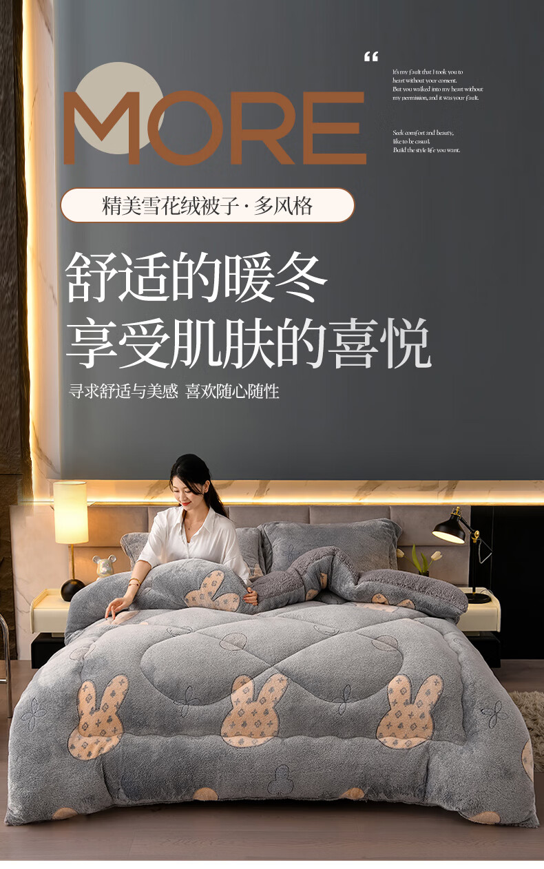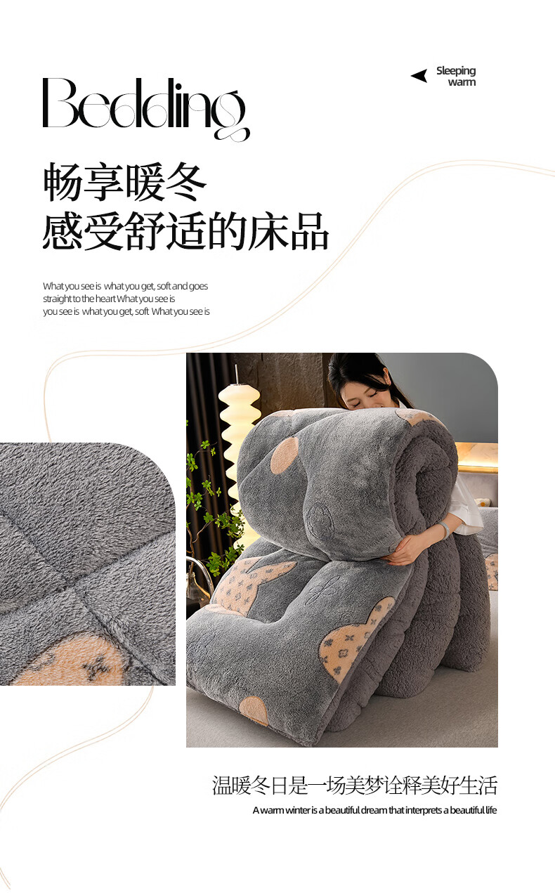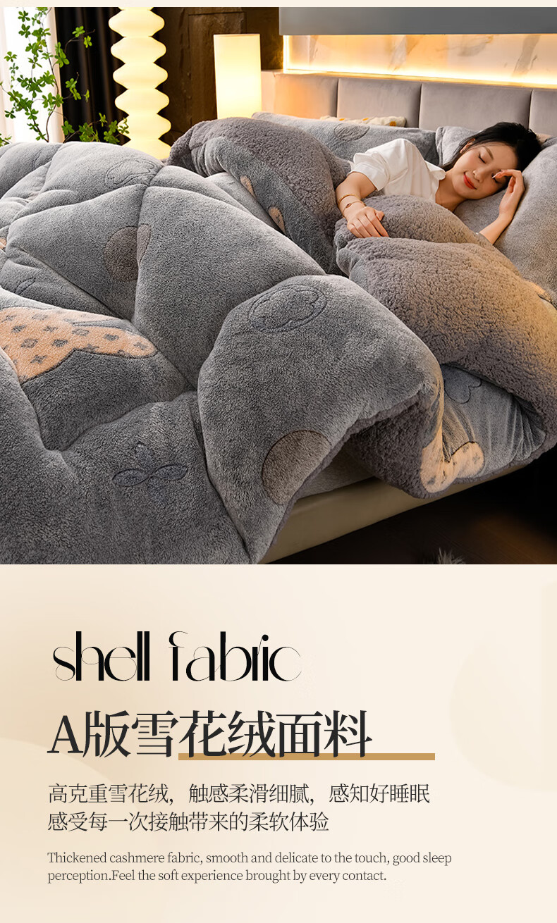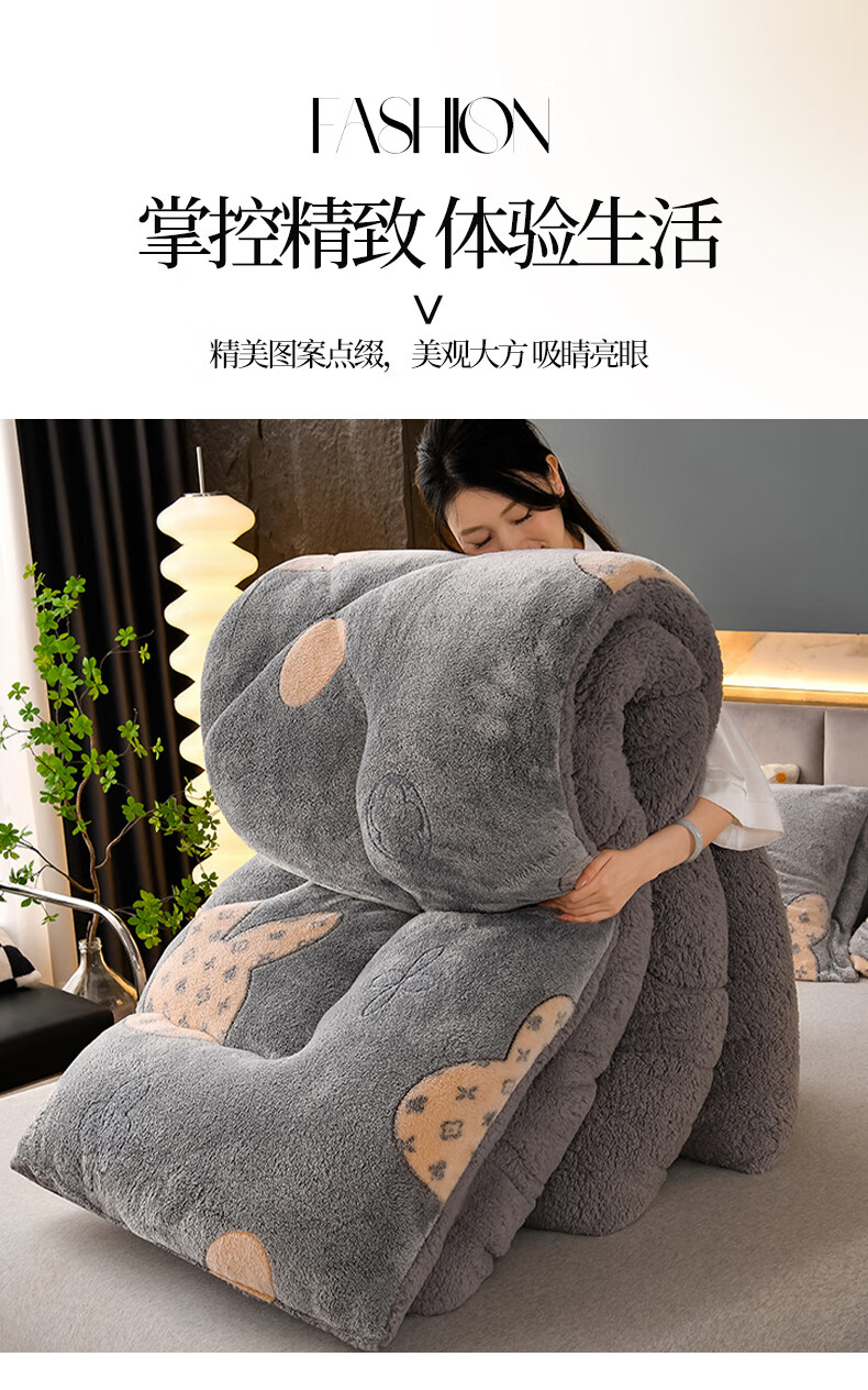 猫人(MiiOW)雪花绒被子冬被 冬季加厚保暖棉被芯羊羔绒被褥厚被子 时尚格调【双面加绒一触即暖持久锁温】 150x200-约5斤【加厚保暖贴肤舒适】