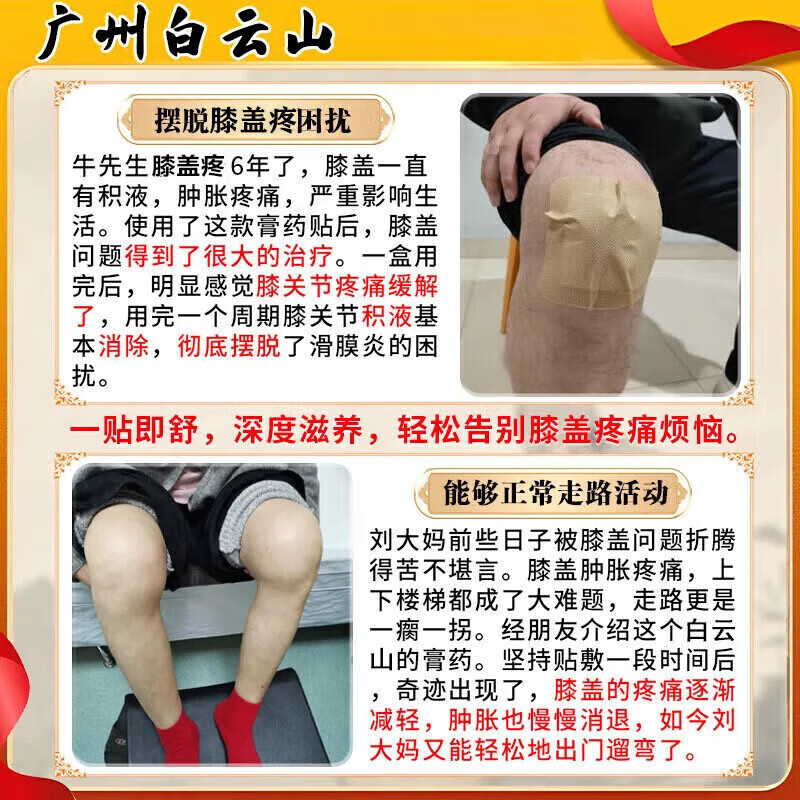 白云山(baiyunshan)膝盖软骨磨损修复半月板损伤疼痛专用的膏药贴强效药治疗贴中老年 特效单盒装【当天见效】日本进口 膝盖积液关节炎滑膜炎热敷膏贴