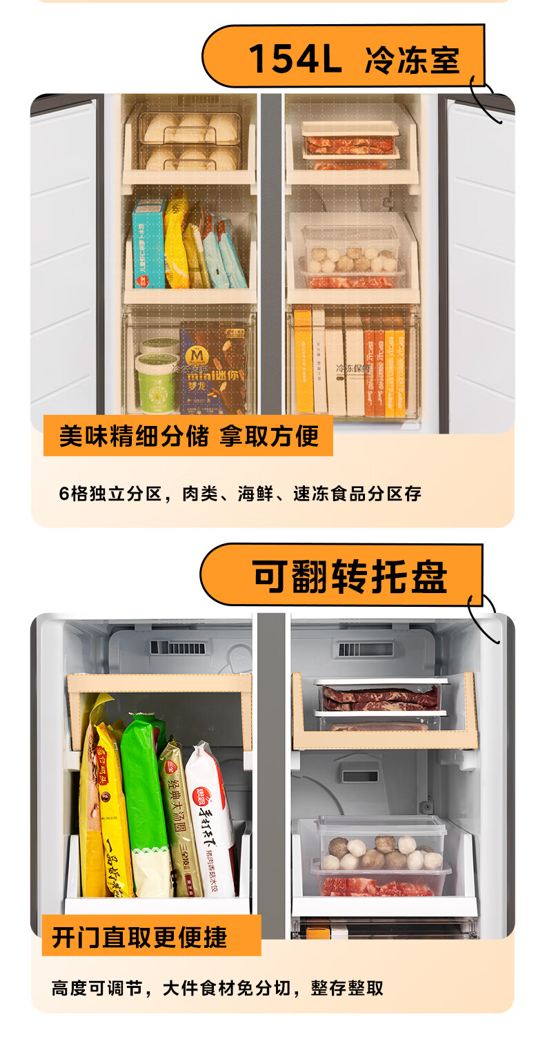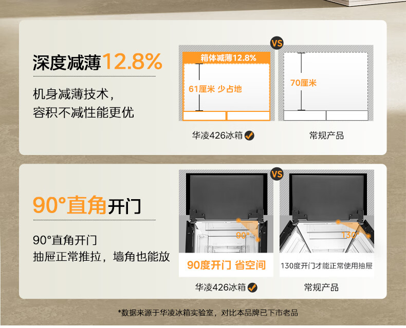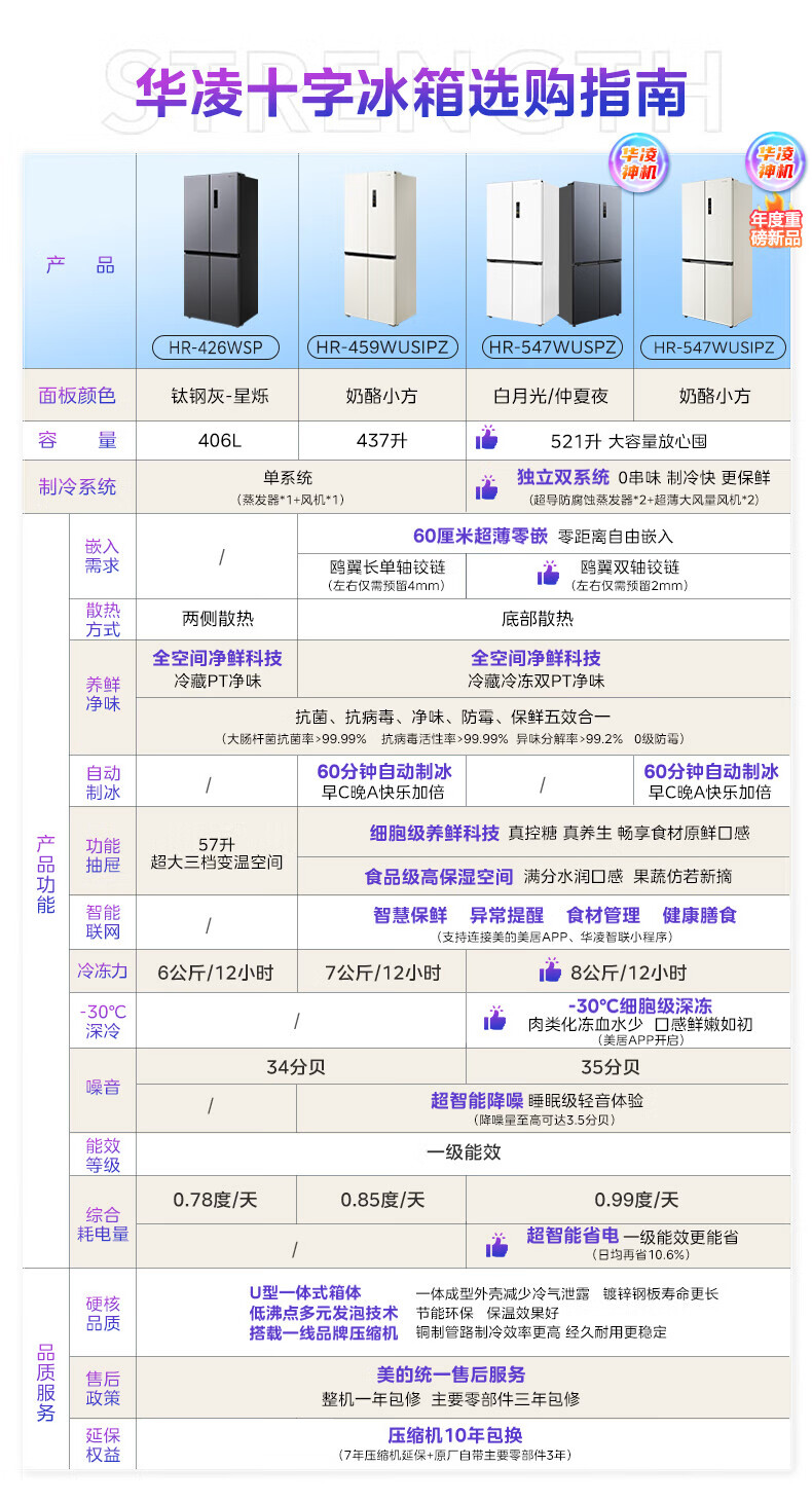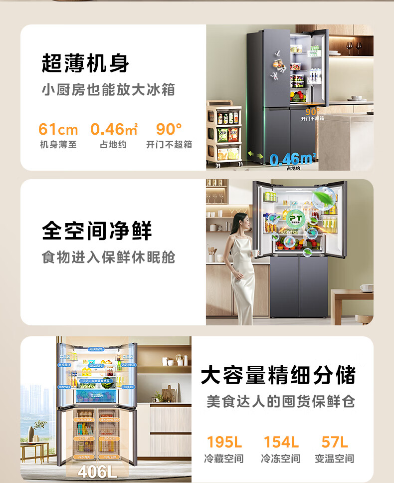 华凌美的出品406L十字双开门对开多门四门冰箱超薄风冷无霜一级能效双变频京东自营HR-426WSP国家补贴