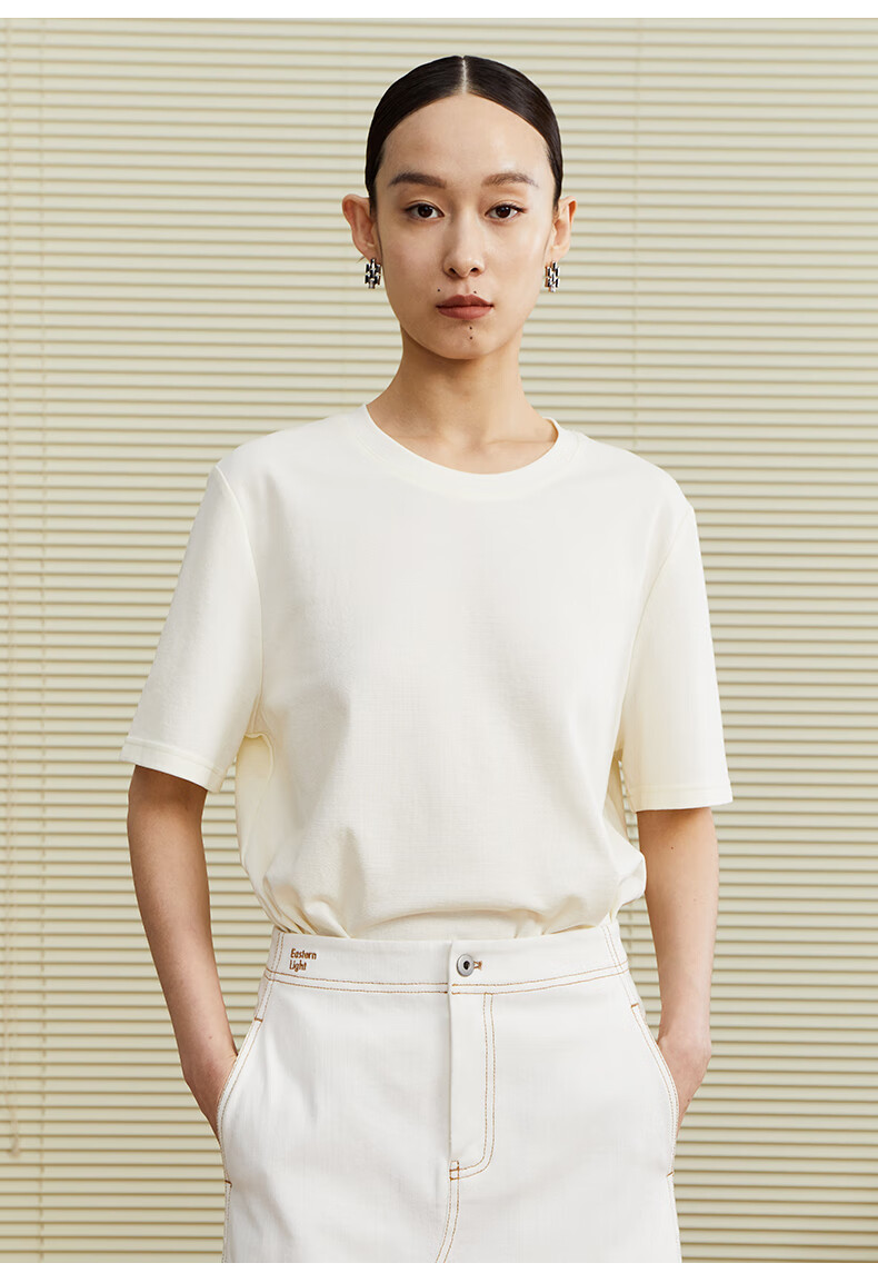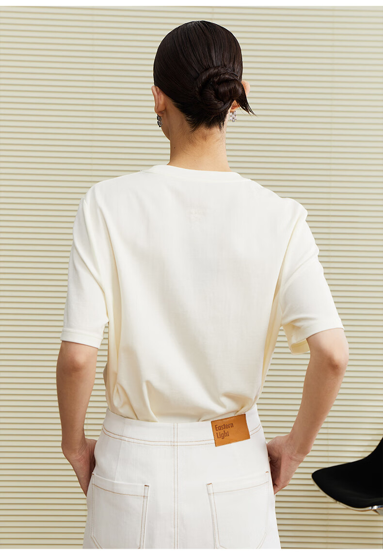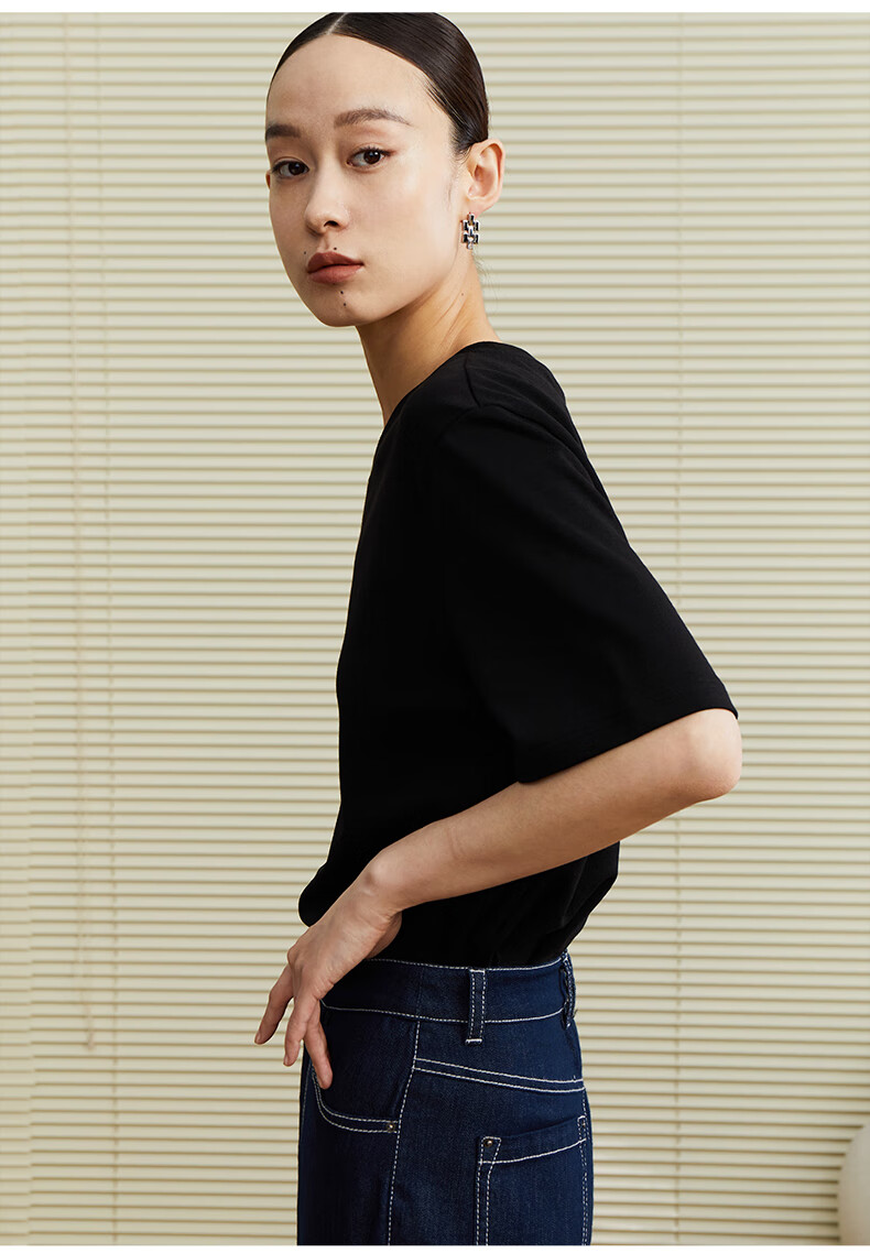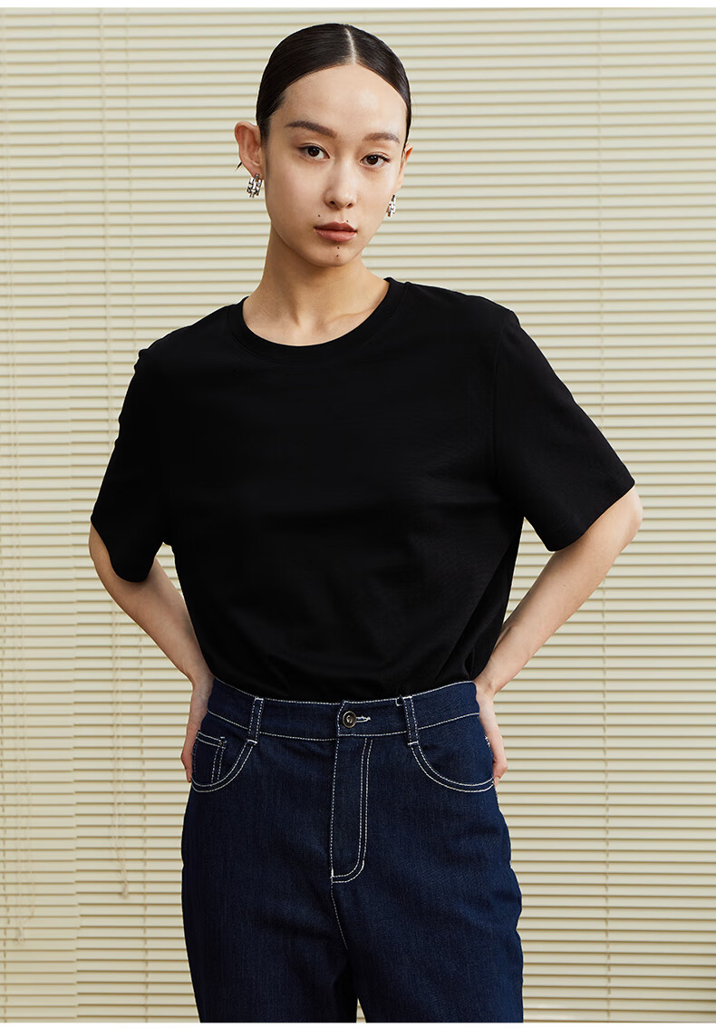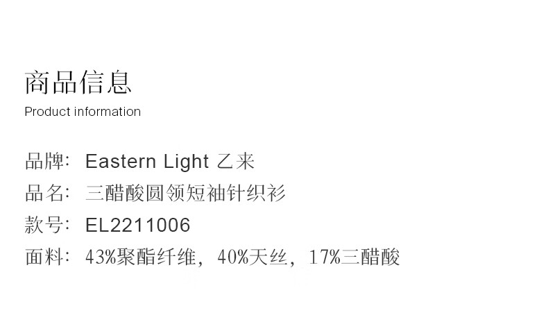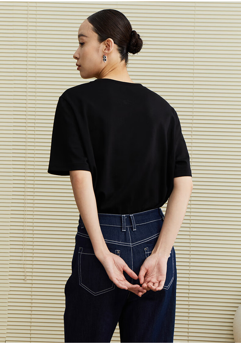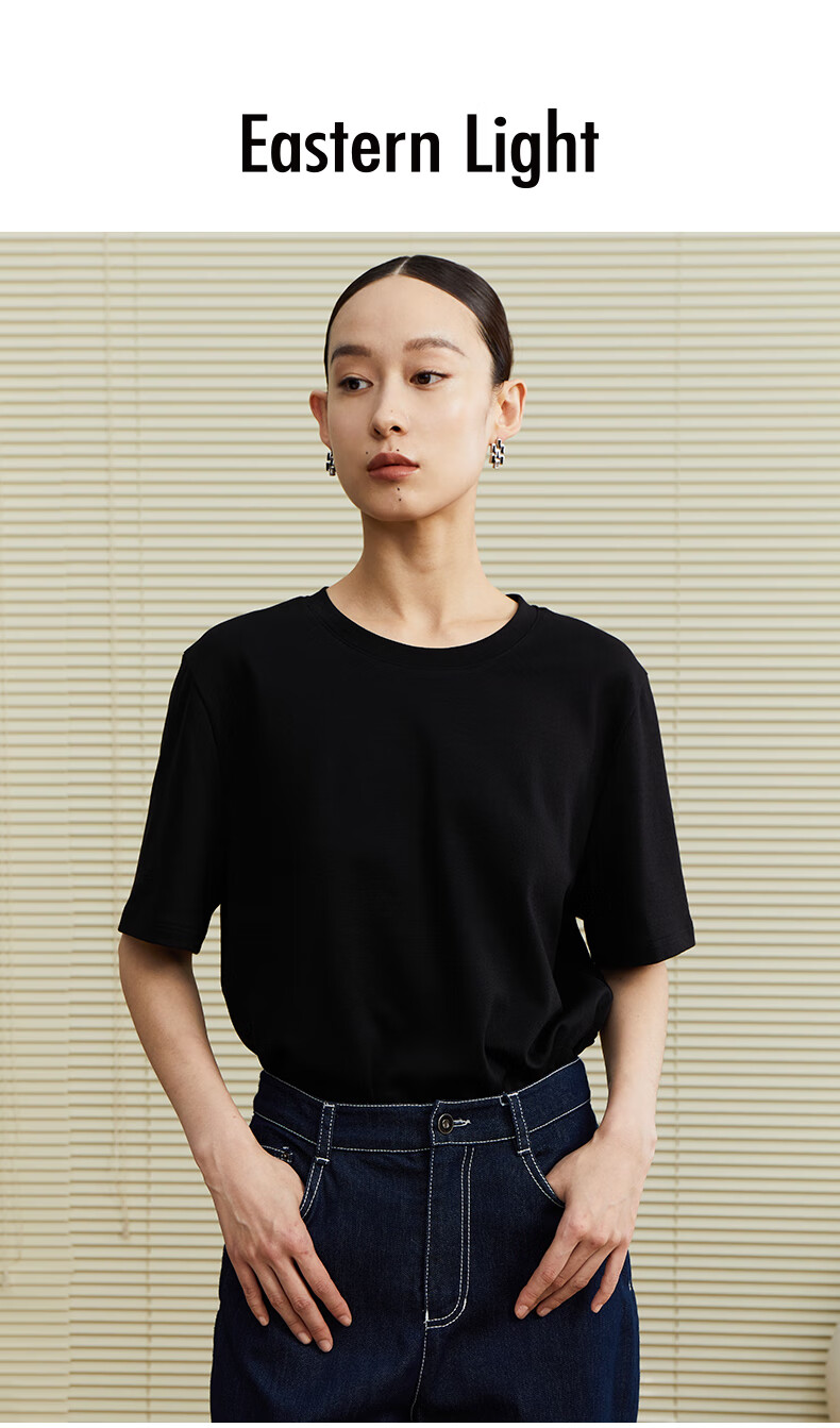 乙来(EASTERN LIGHT)【100%日本进口三醋酸】短袖T恤女内搭打底衫 上衣-优雅黑 M