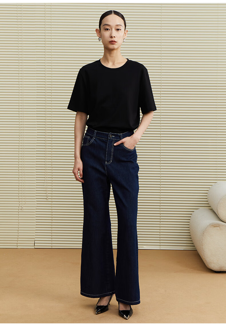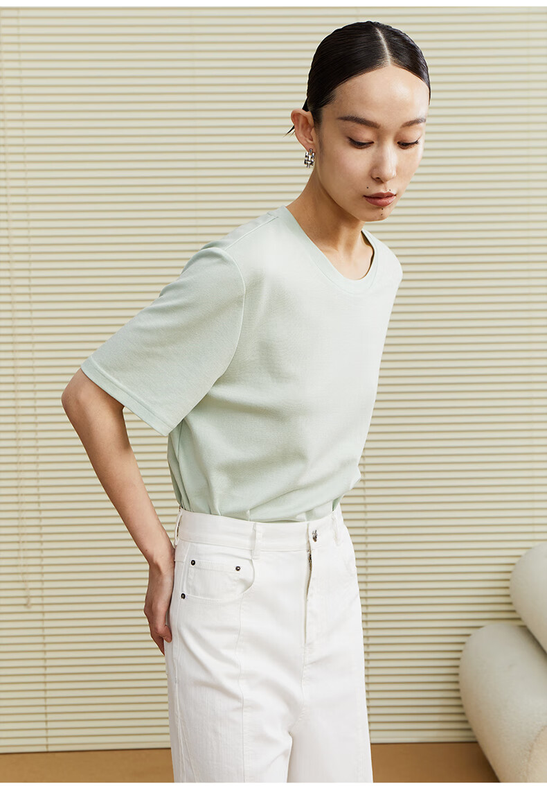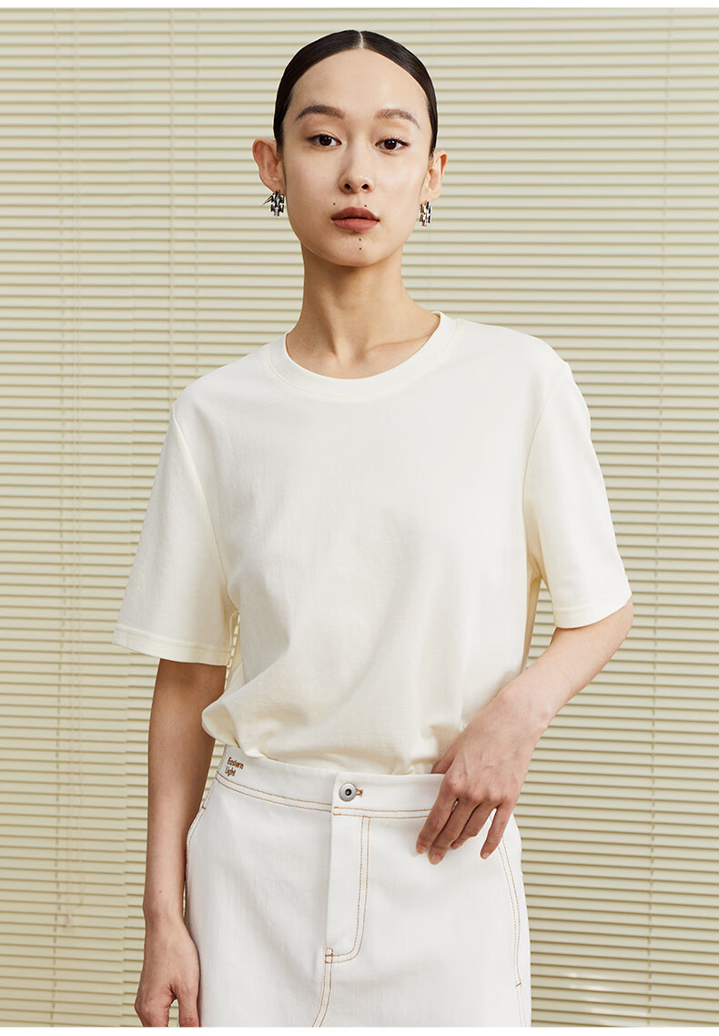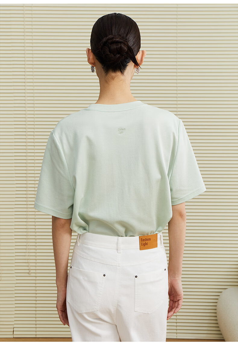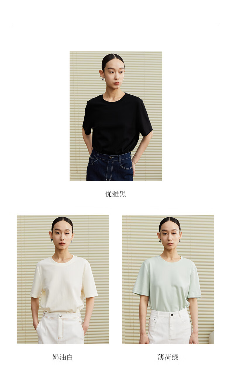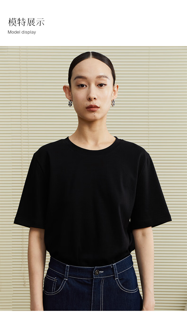 乙来(EASTERN LIGHT)【100%日本进口三醋酸】短袖T恤女内搭打底衫 上衣-优雅黑 M