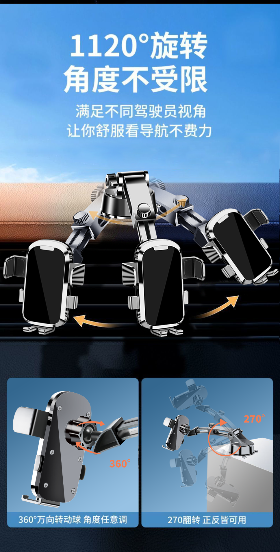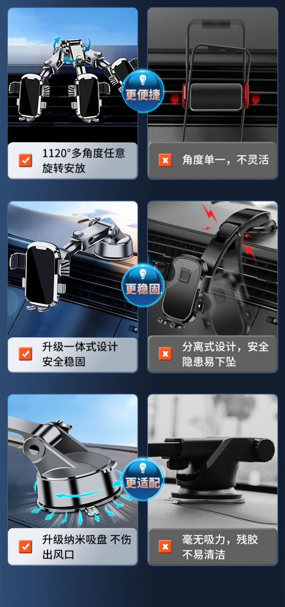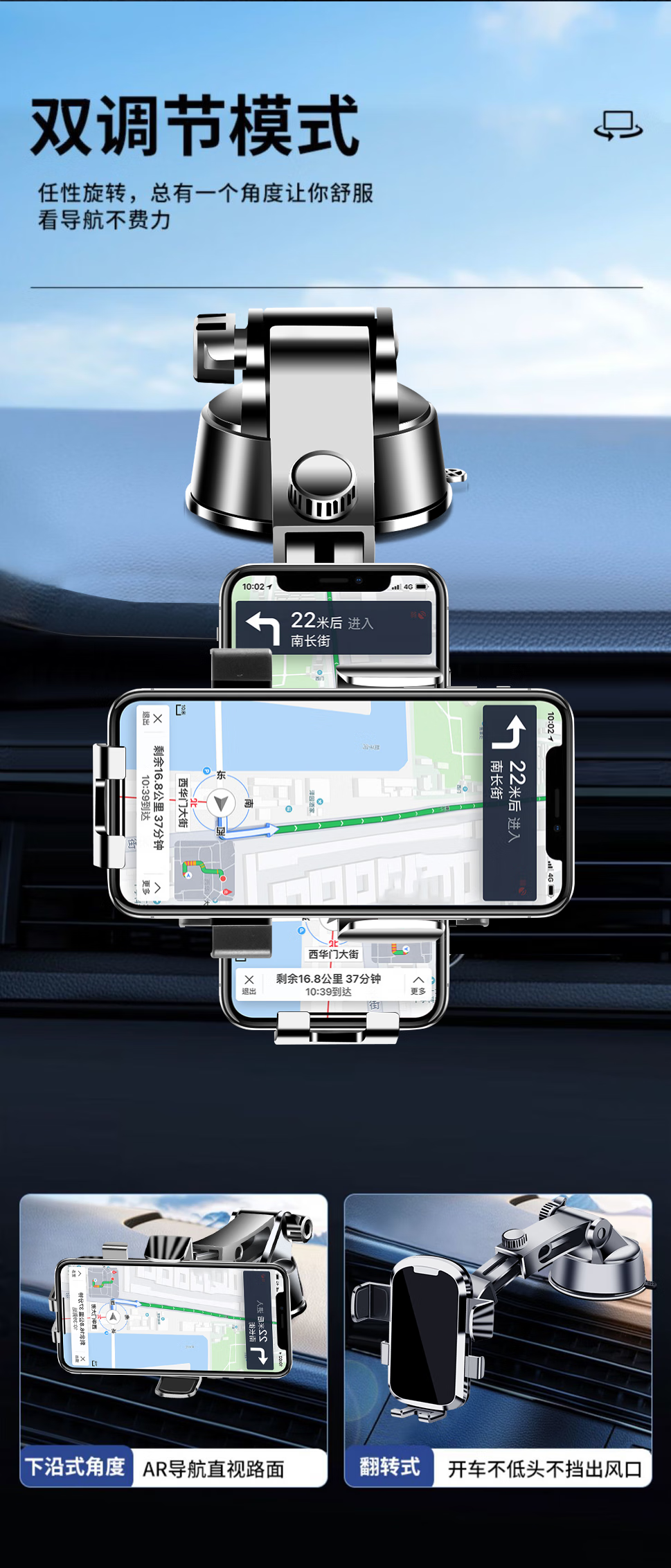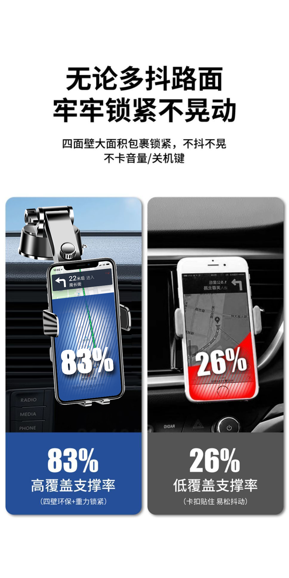 宇缤车载手机支架吸盘式车用车内仪表台导航防抖中控台支撑货车通用 镜面款【广角设计360旋转】纳米吸盘