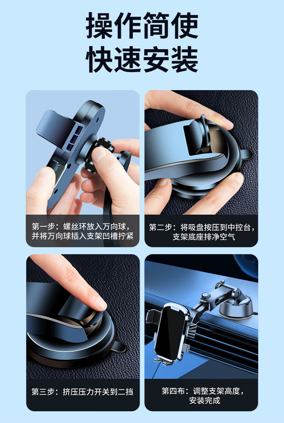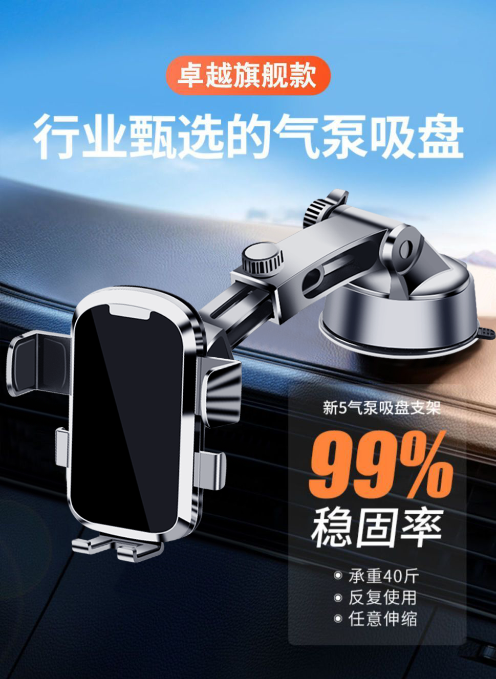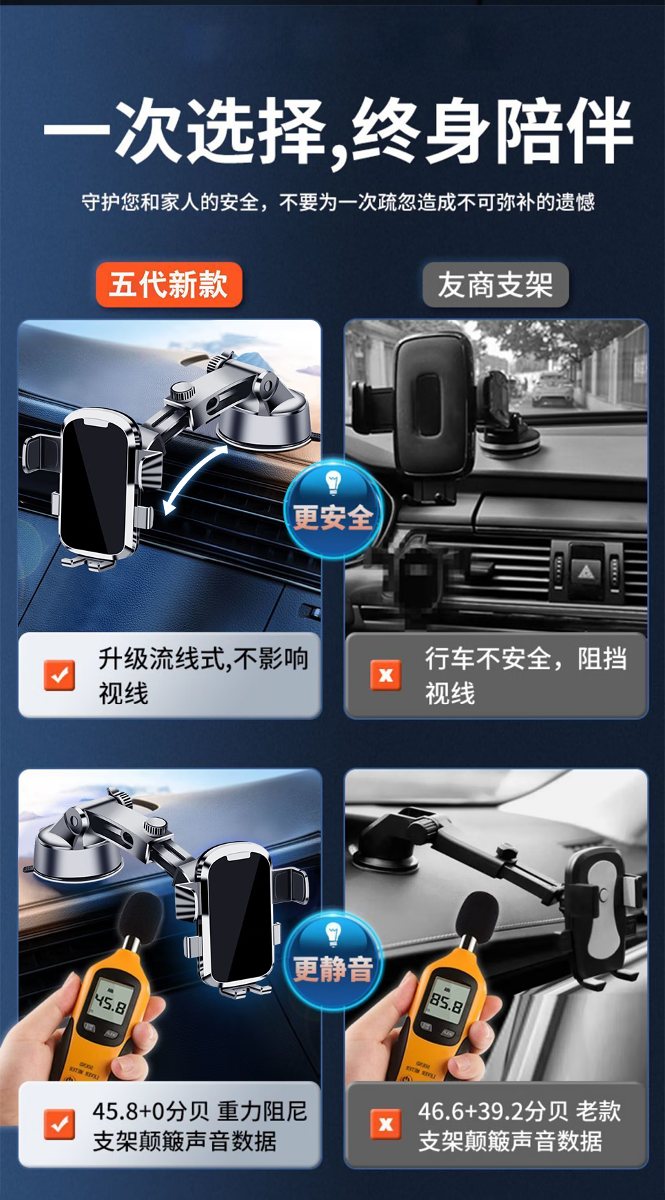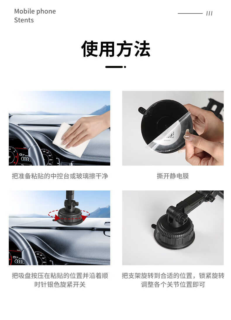 宇缤车载手机支架吸盘式车用车内仪表台导航防抖中控台支撑货车通用 镜面款【广角设计360旋转】纳米吸盘