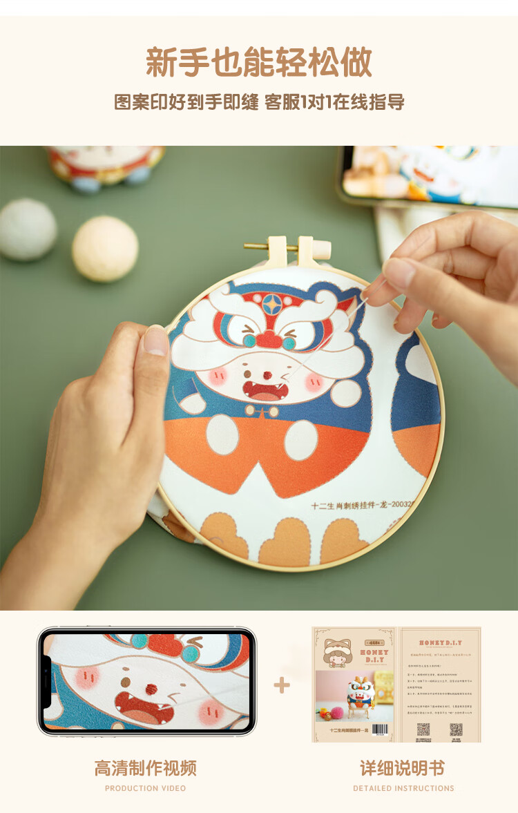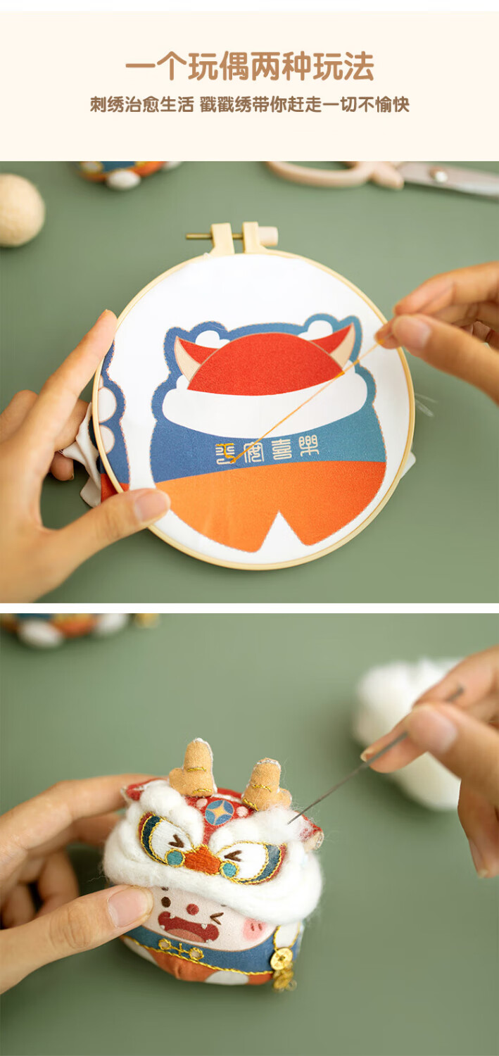 哈尼手工十二生肖龙兔刺绣手工diy材料香囊挂件玩偶国潮送人礼物 十二生肖毛毡刺绣--马