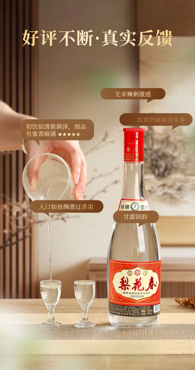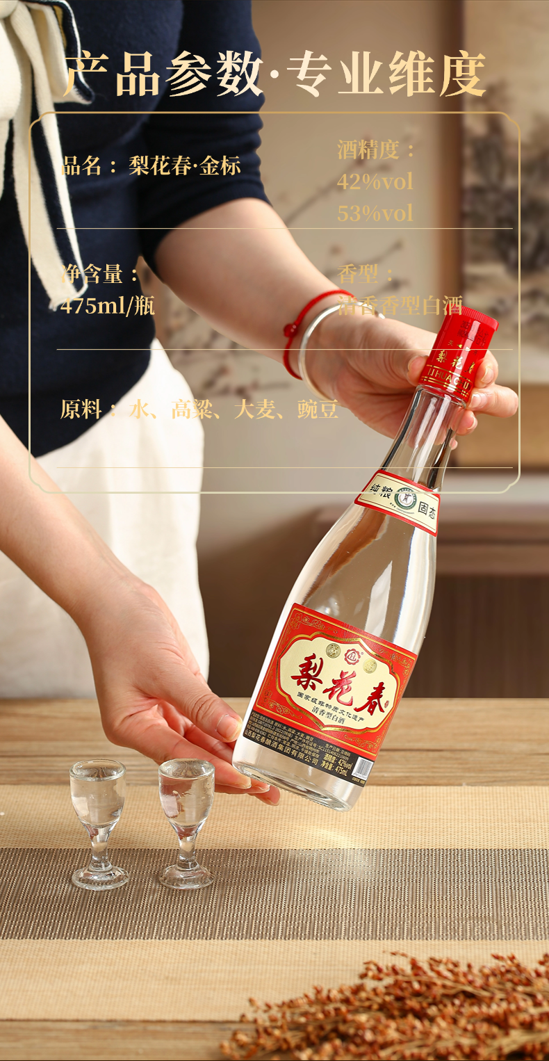 梨花春·金标 【国家非遗】 纯粮固态发酵特级口粮酒53度 清香型475ml 53度 475mL 6瓶