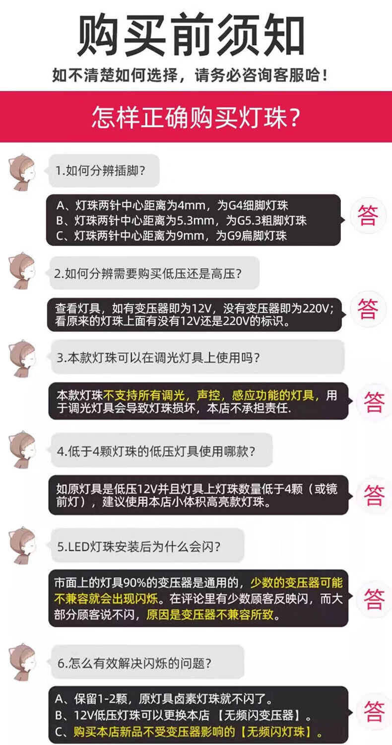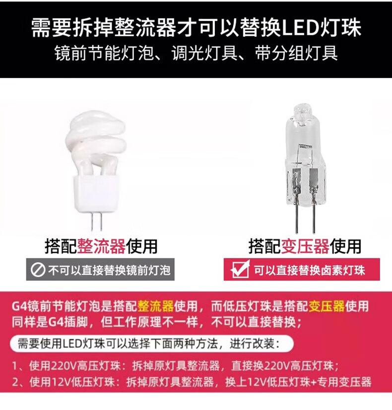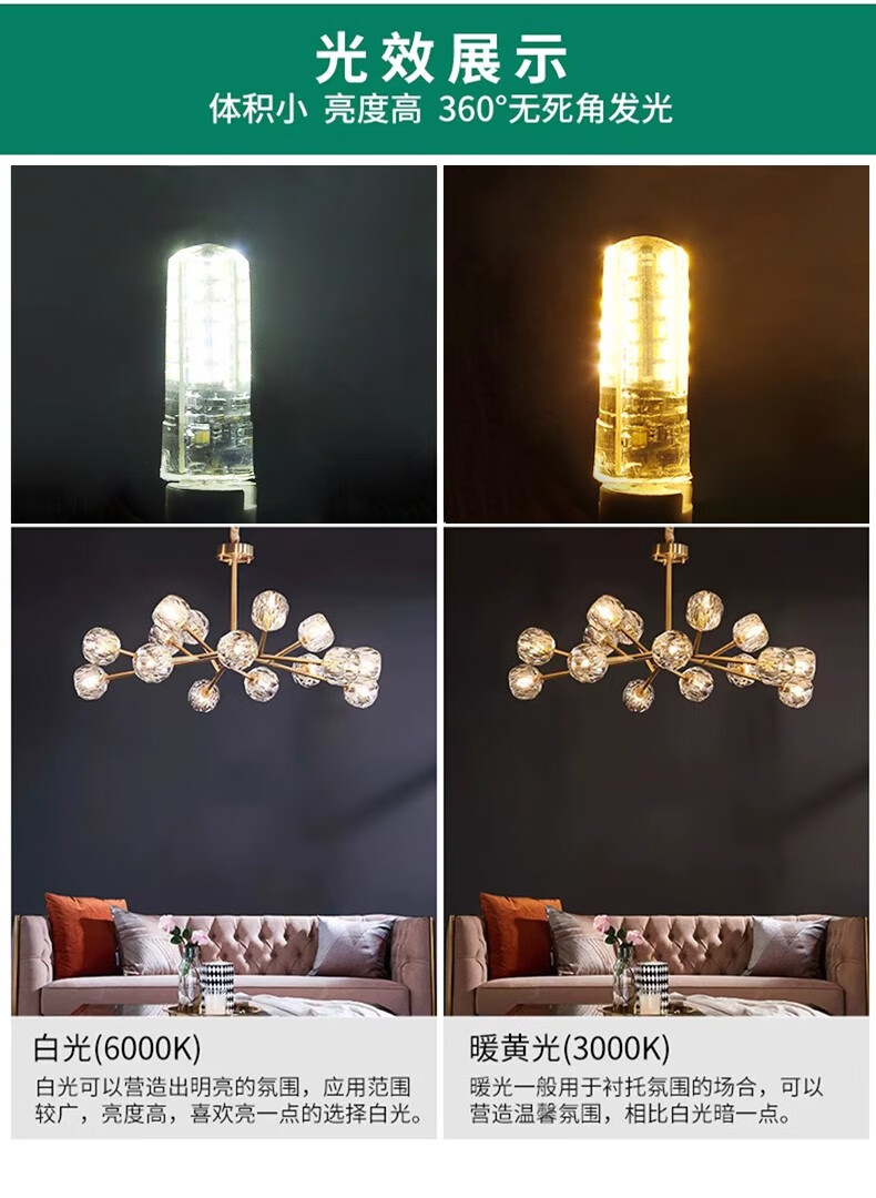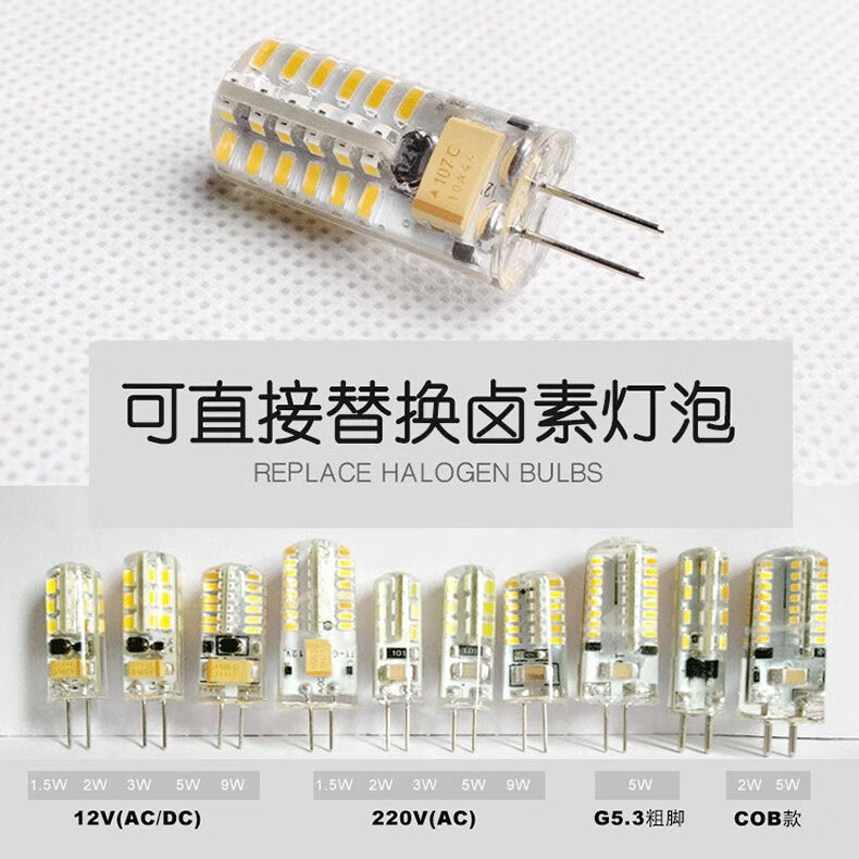 同易LED灯泡12V低压220V高压G4细针插脚镜前客厅卧室灯珠水晶灯光源 硅胶G5.3粗脚 -5W【220V 高压】 暖光