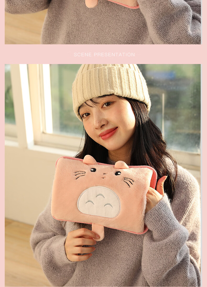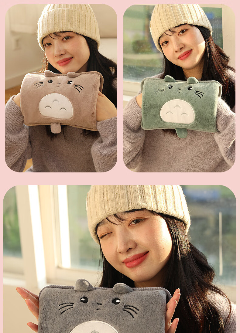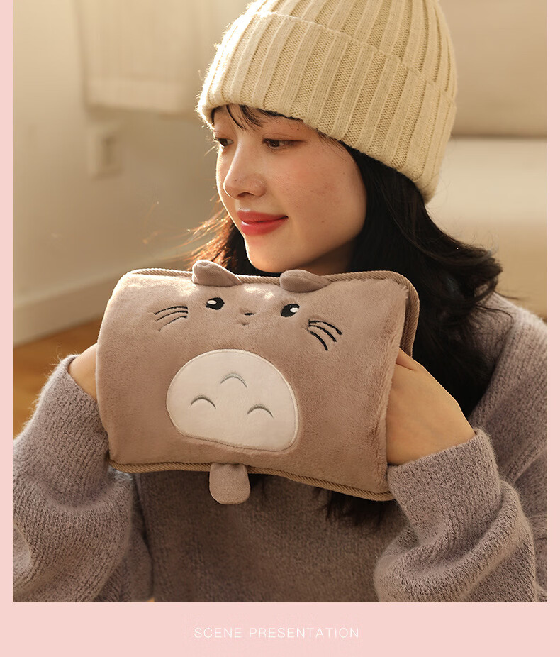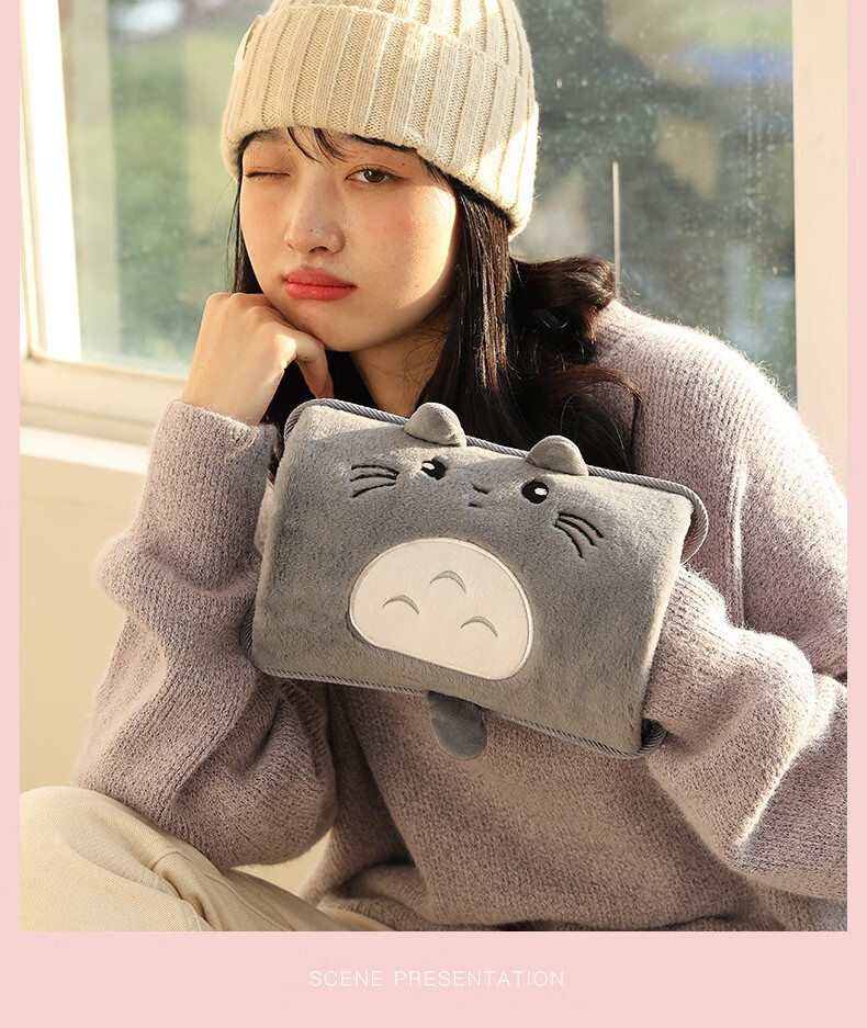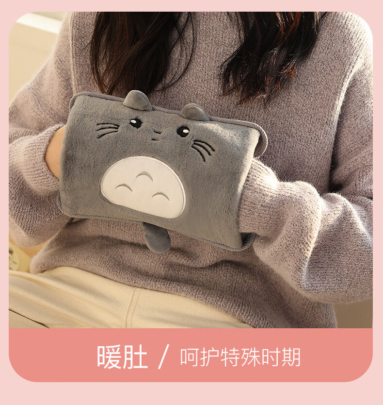 2025新款国标热水袋充电式暖水袋暖手宝敷肚子电热宝暖宝宝 加长款双插手俏皮熊灰色 已注水单个纸盒包装【需要平放充电】