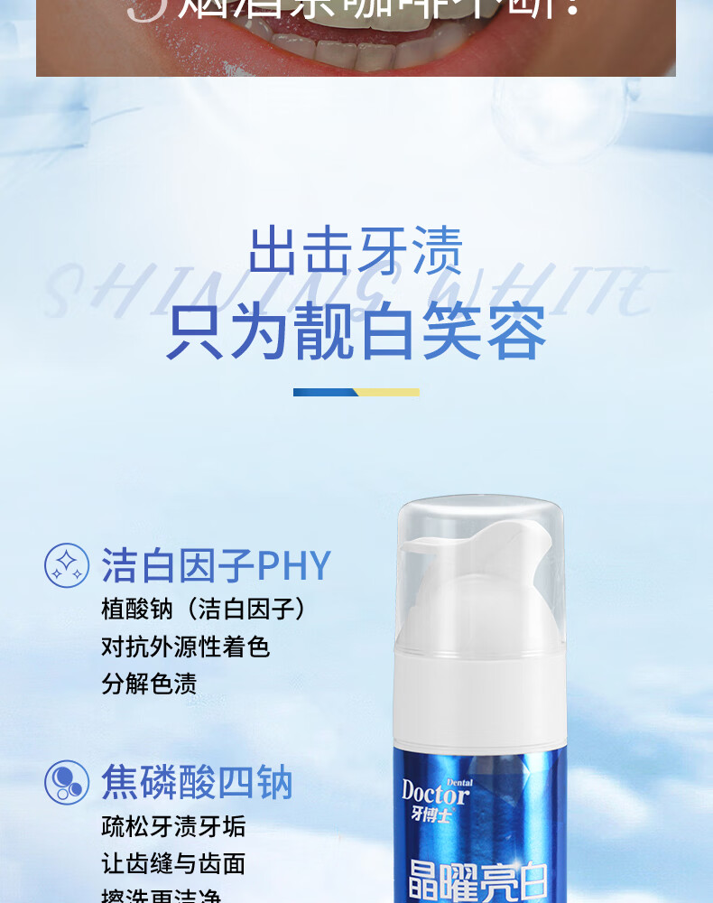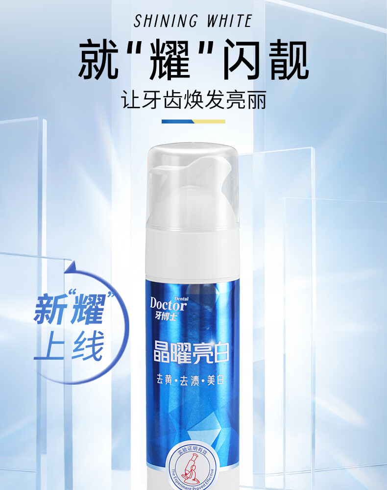 牙博士晶曜亮白牙膏按压式去口臭去黄去牙渍美白清新口气泵式 【囤货装】390g+90g