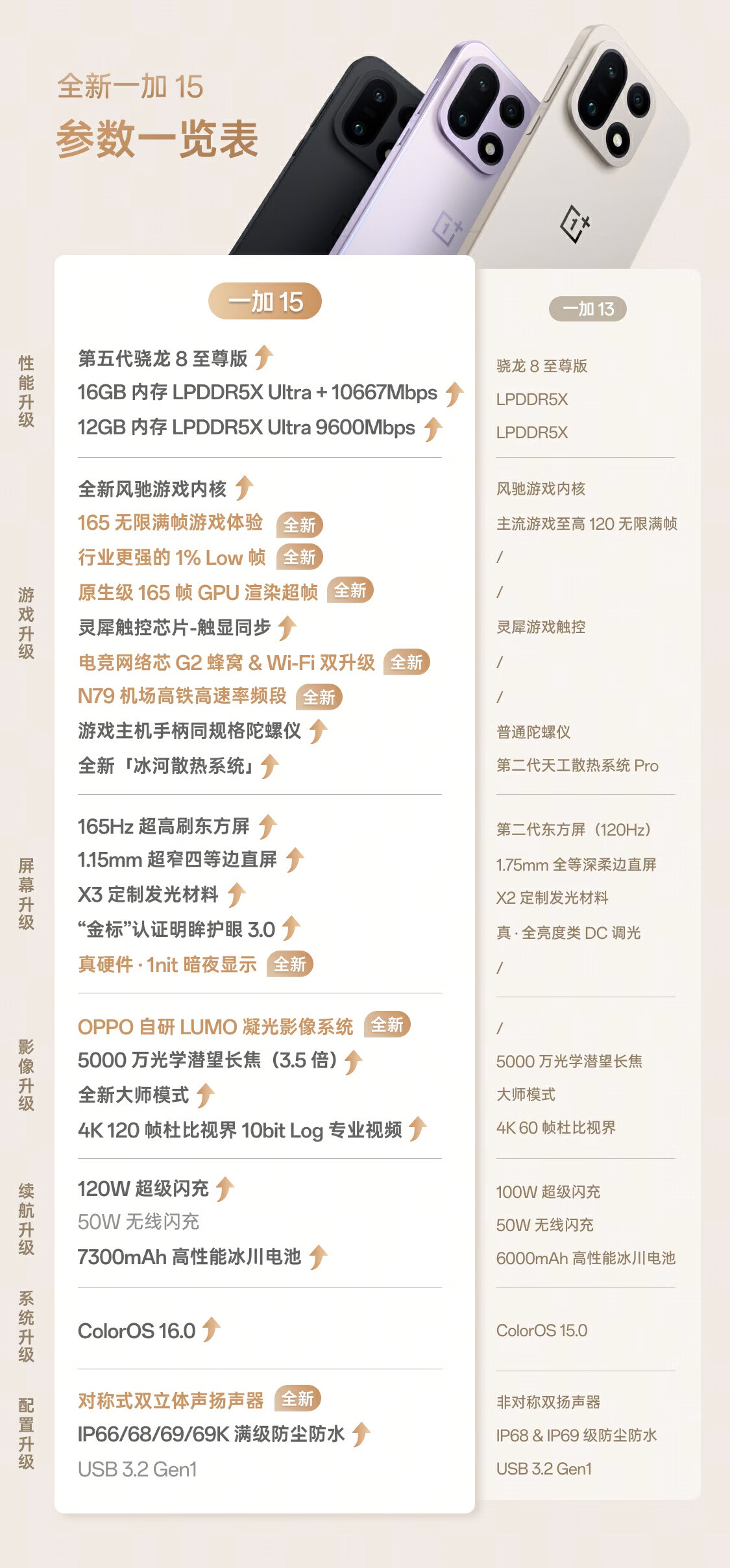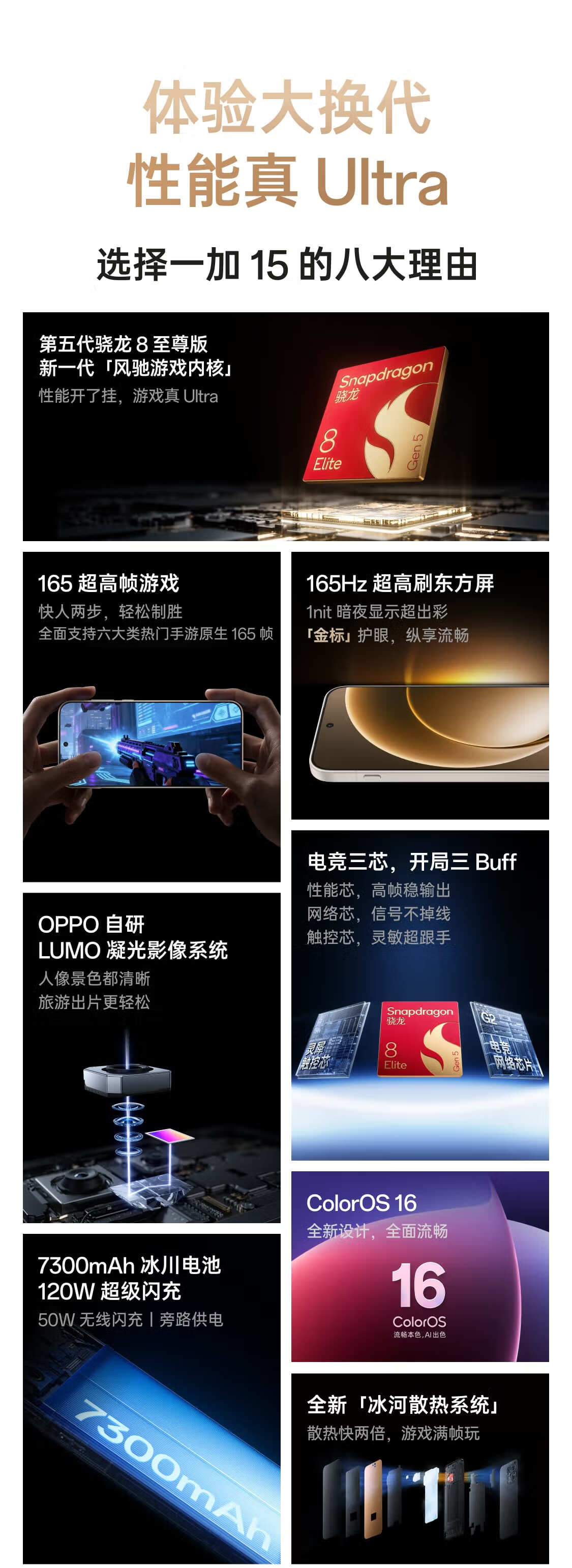 一加 15 性能 Ultra 超旗舰 第五代骁龙 8 至尊版 165Hz 超高刷东方屏 7300mAh 冰川电池 AI手机 原色沙丘 12GB+256GB