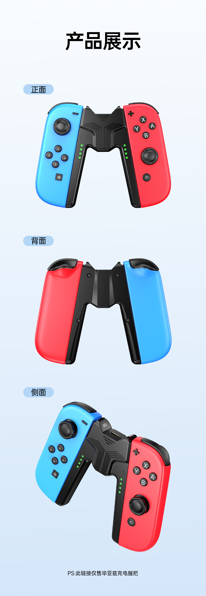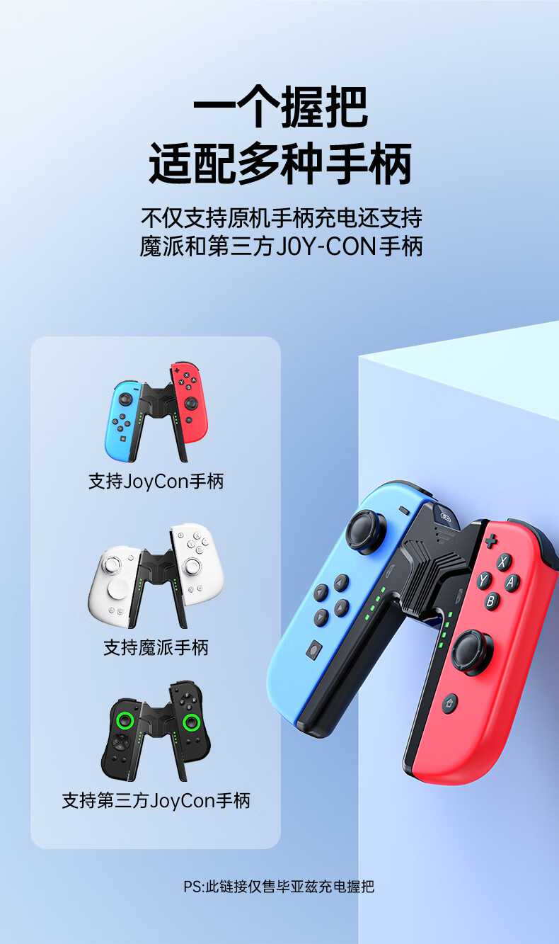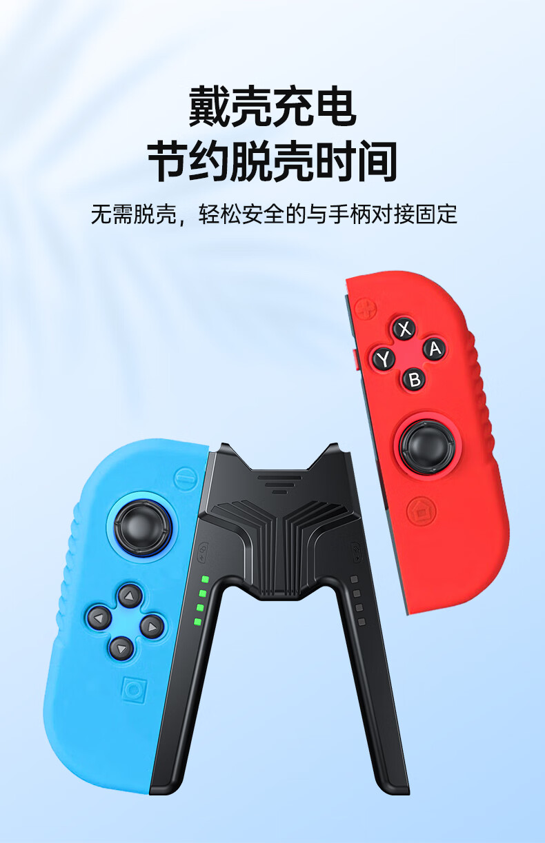 毕亚兹 Switch手柄握把充电器Joy-Con手柄充电器握把边冲边玩支持带壳使用-黑色 支持Switch/OLED全版本
