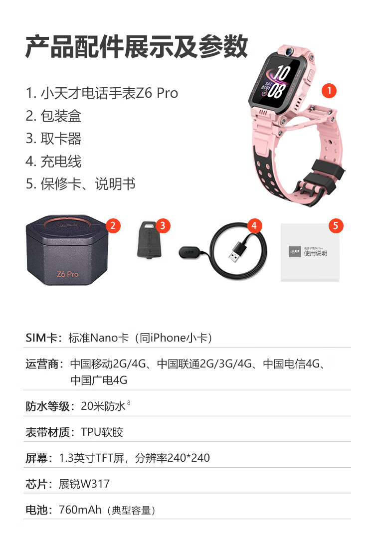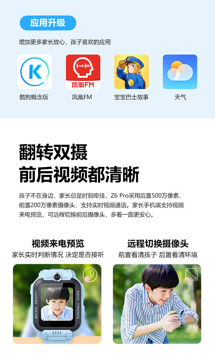 小天才【现货速发】电话手表Z6Pro/Z6Pro少年/Z6D升级防水GPS定位学生儿童4G视频拍照双摄 Z6Pro 天镜蓝【咨询客服更优惠】