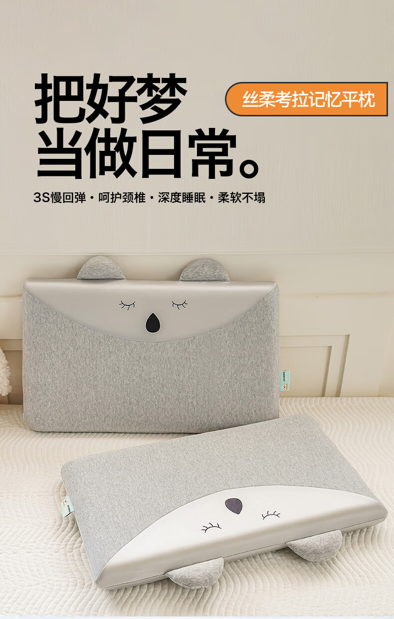 元族2025新款丝柔考拉记忆平枕 枕头枕芯 粉色/只 50cm 30*