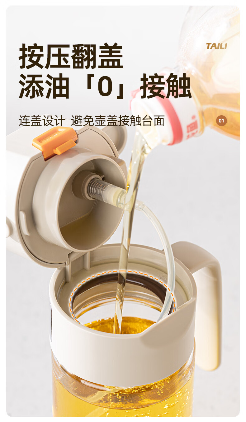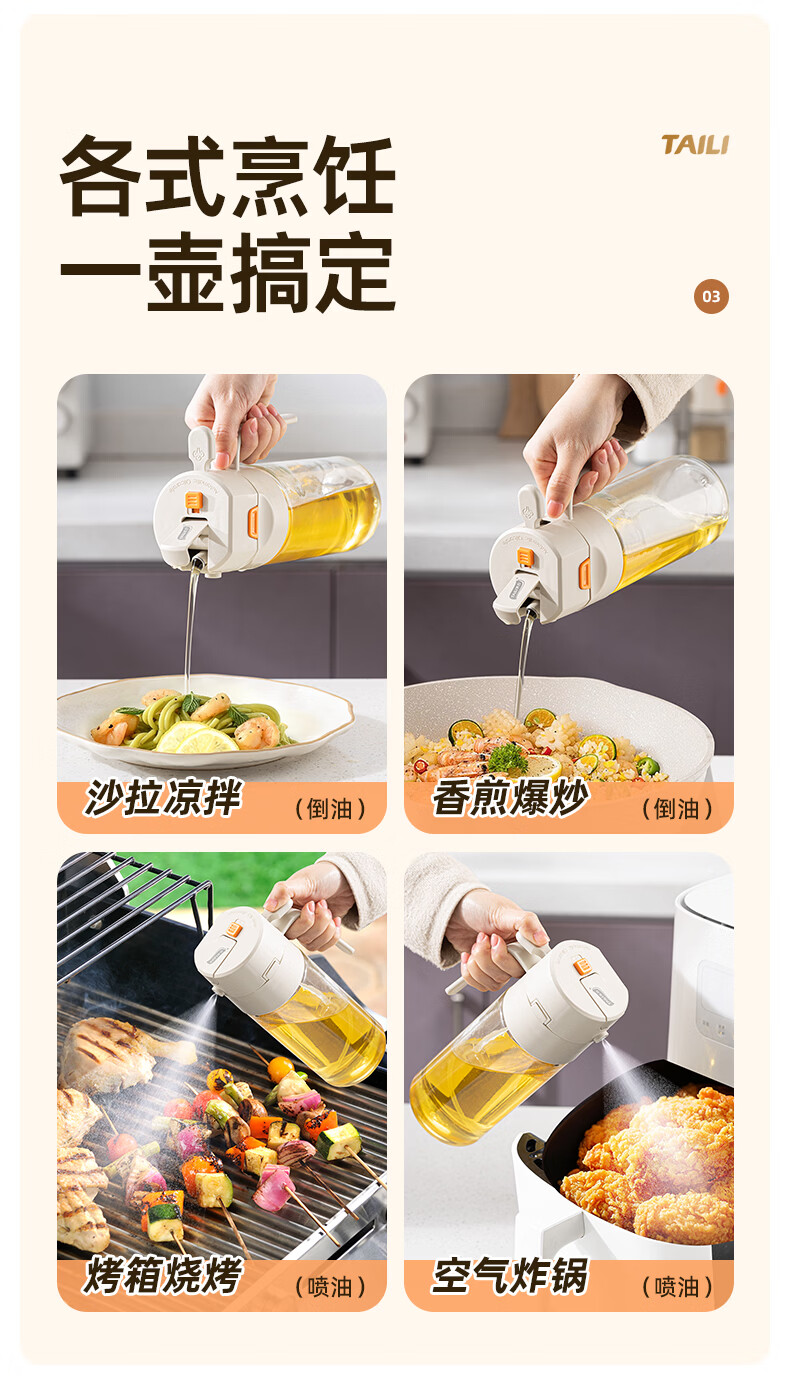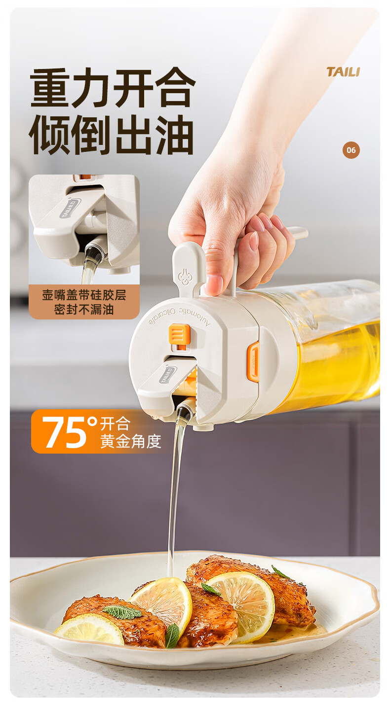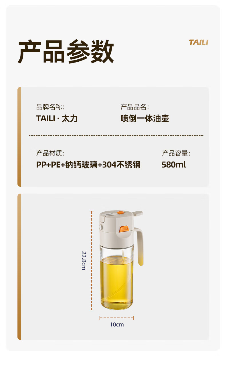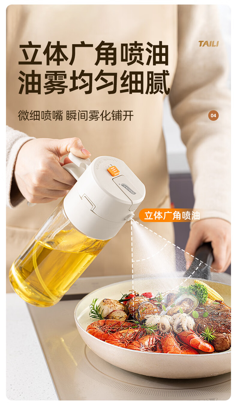 太力油壶自动开合喷倒两用玻璃油瓶酱油醋调料瓶油壶不挂油厨房 【喷洒+倾倒出油】0.6L两用油壶