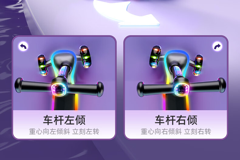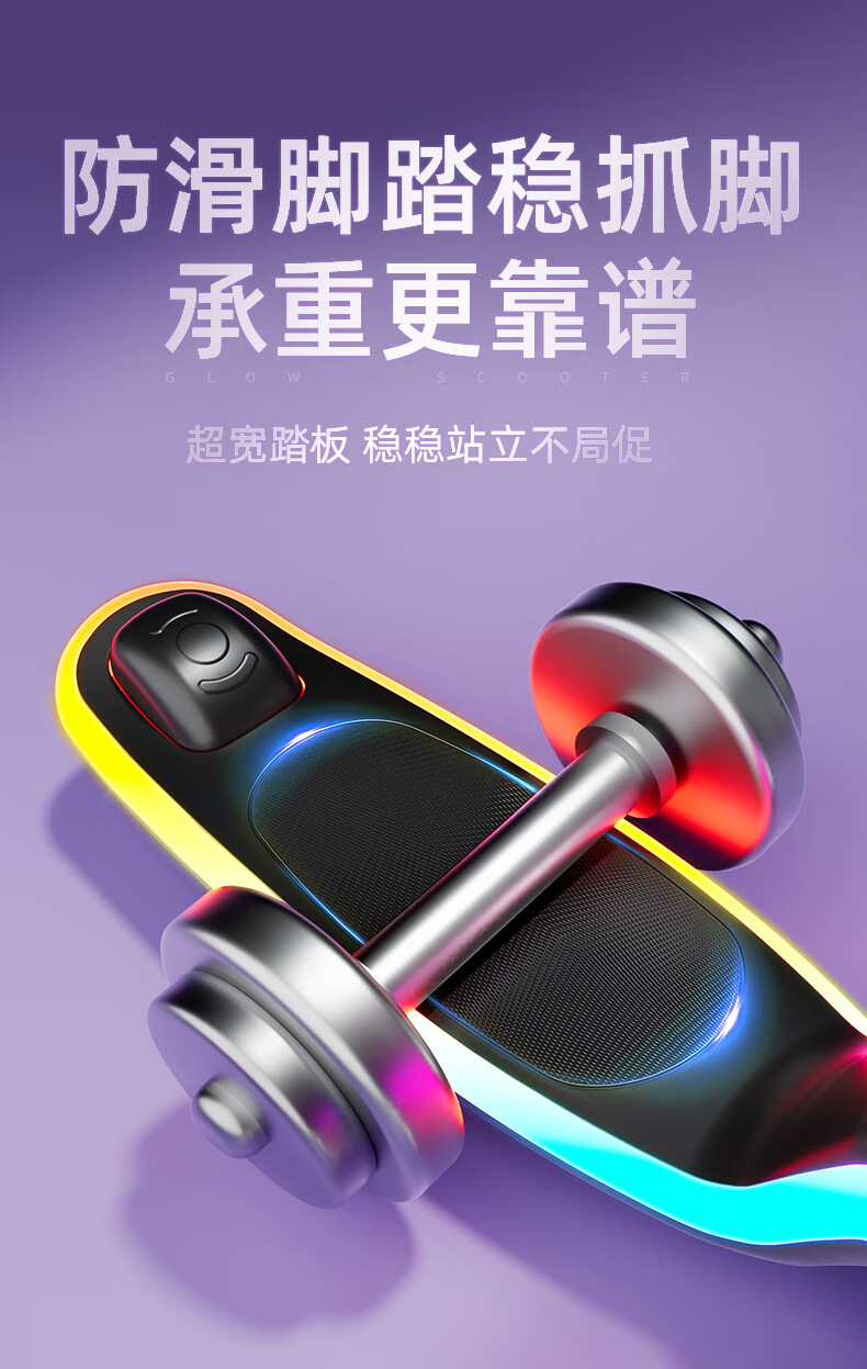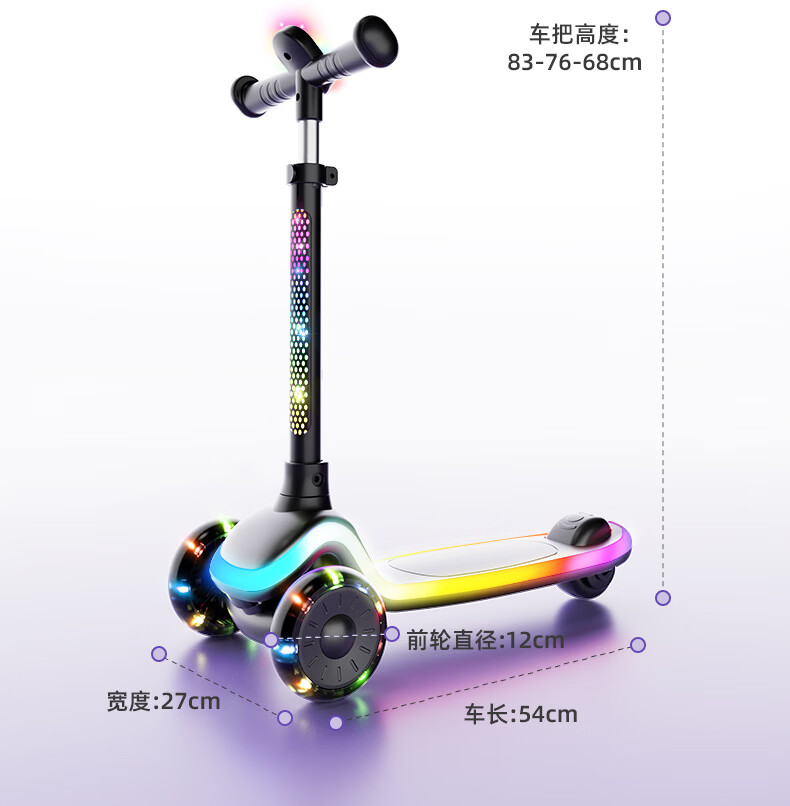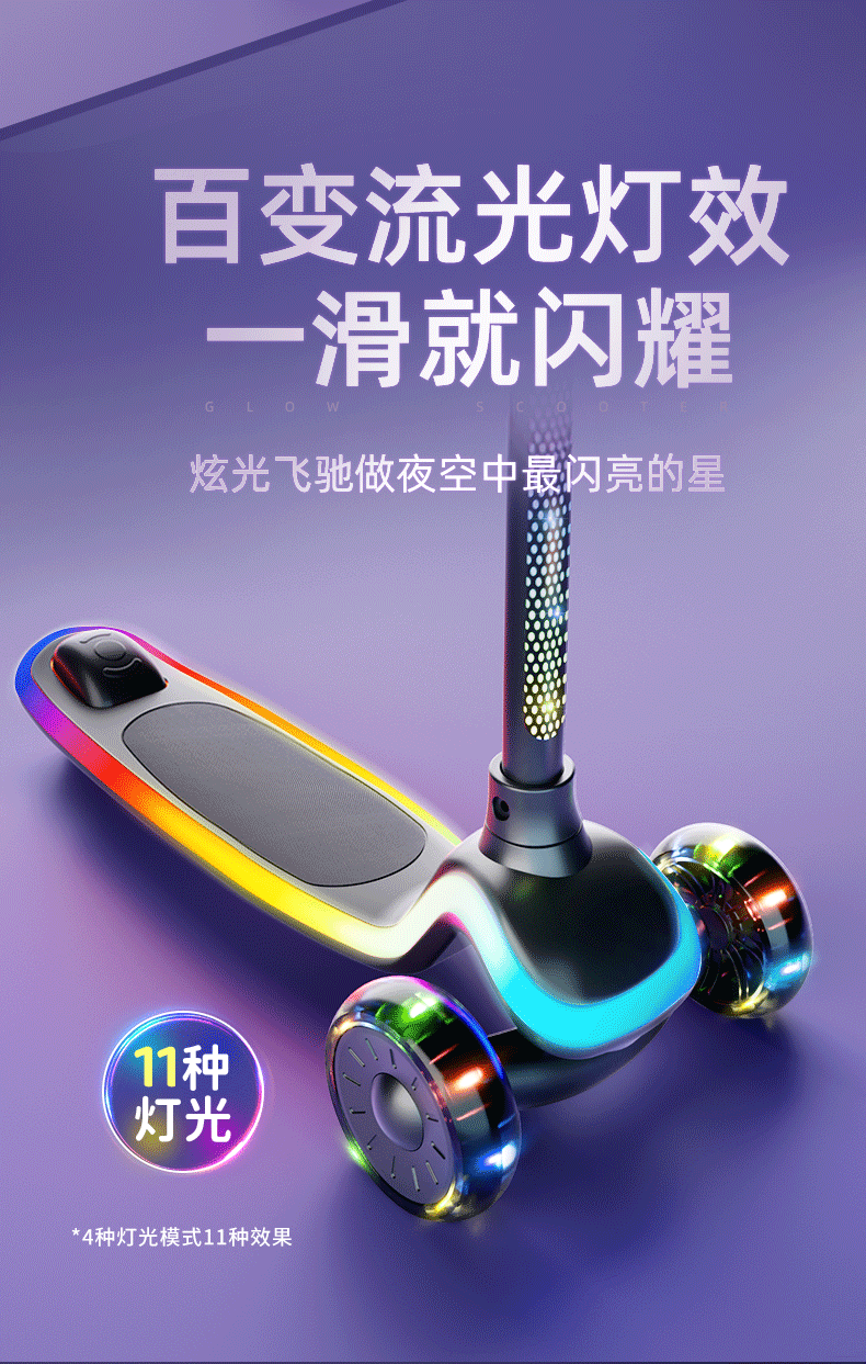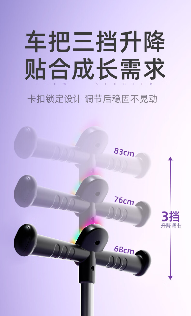 贝趣儿童滑板车1-3-6-12岁宝宝防侧翻滑滑车2岁小孩幼儿玩具踏板车 星芒黑【11种灯光+3档高度调节】