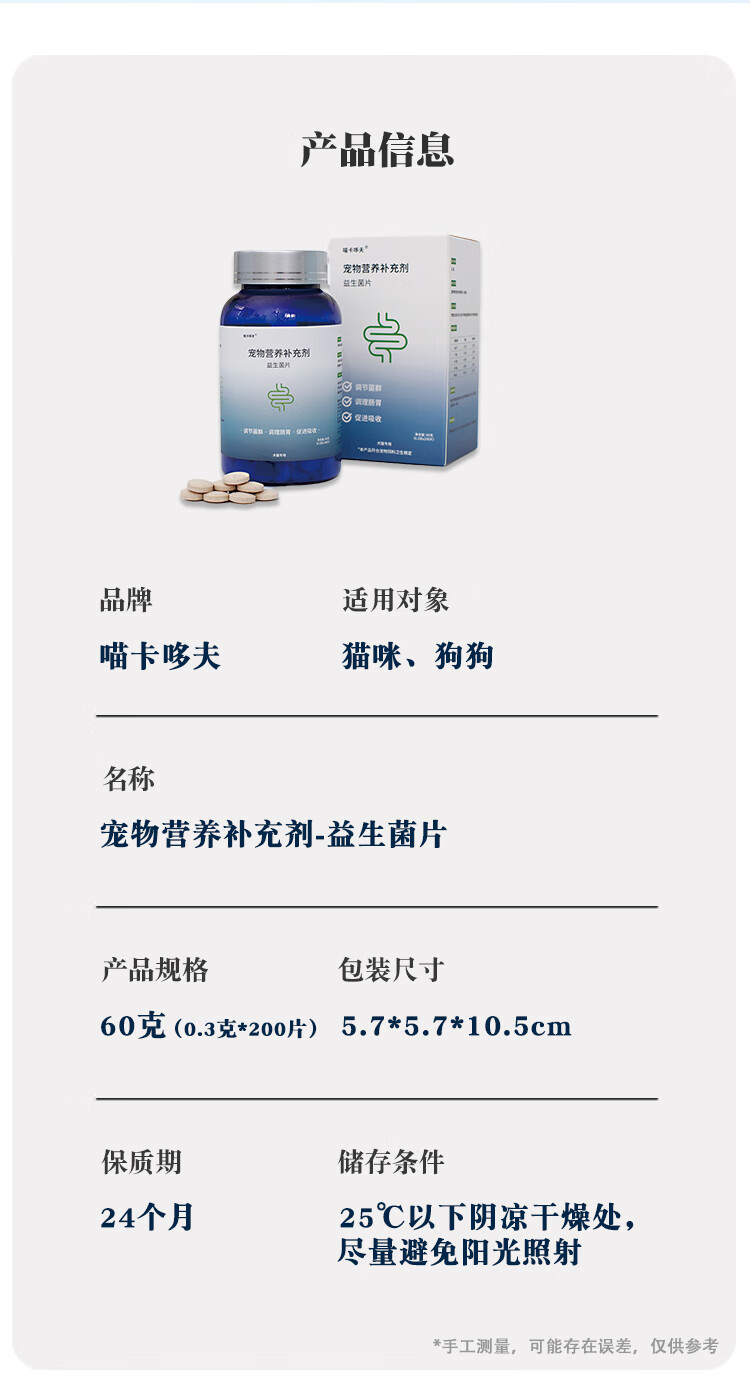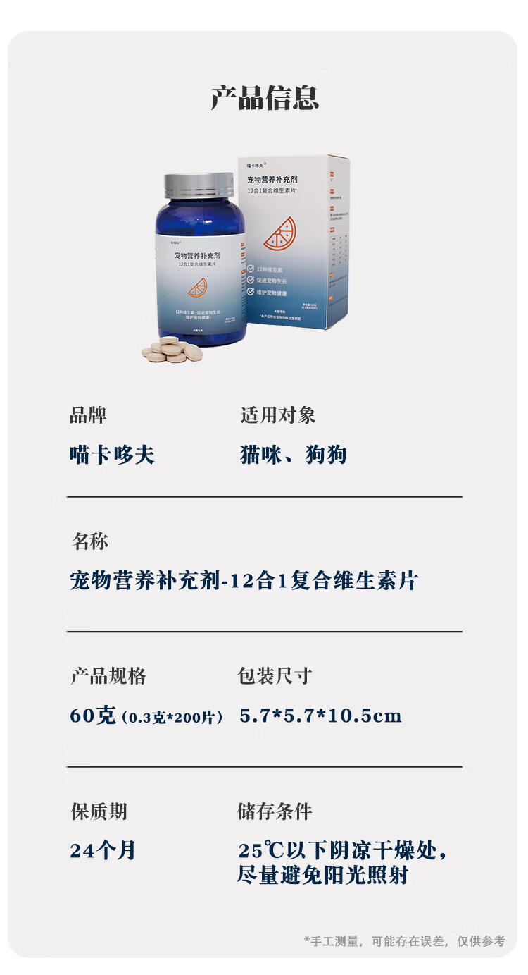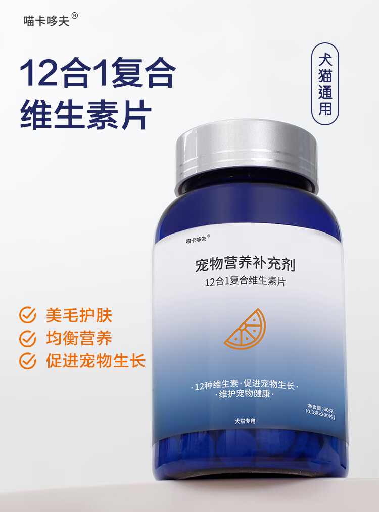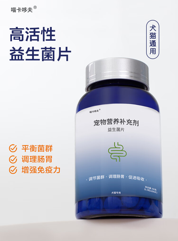 喵卡哆夫【MAKAR】宠物维生素益生菌卵磷脂鱼油 去泪痕美毛呕吐软便防掉毛 复合维生素片 【1瓶装】200片