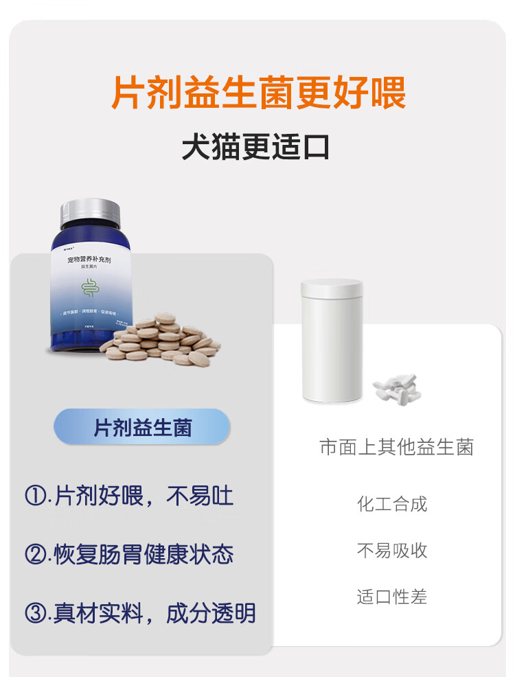 RedDog【医院推荐】维力复合益生菌片狗狗维生素化毛膏猫咪鱼油软骨素 复合益生菌片75g*2瓶(300片)