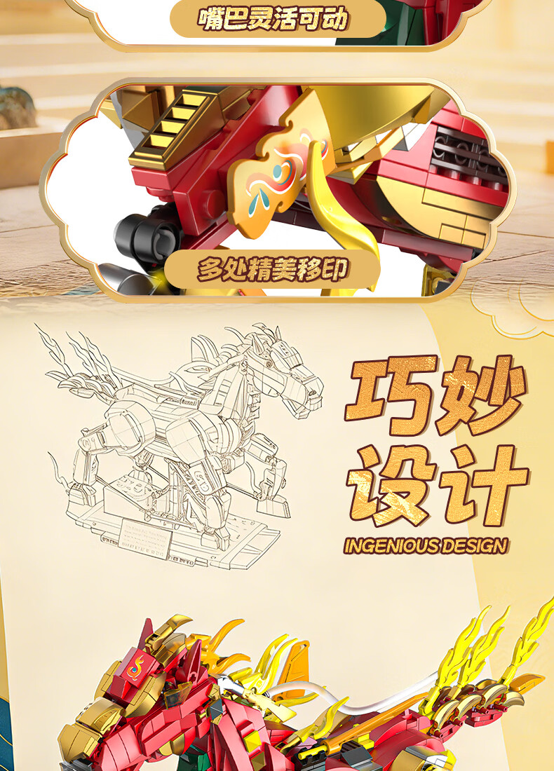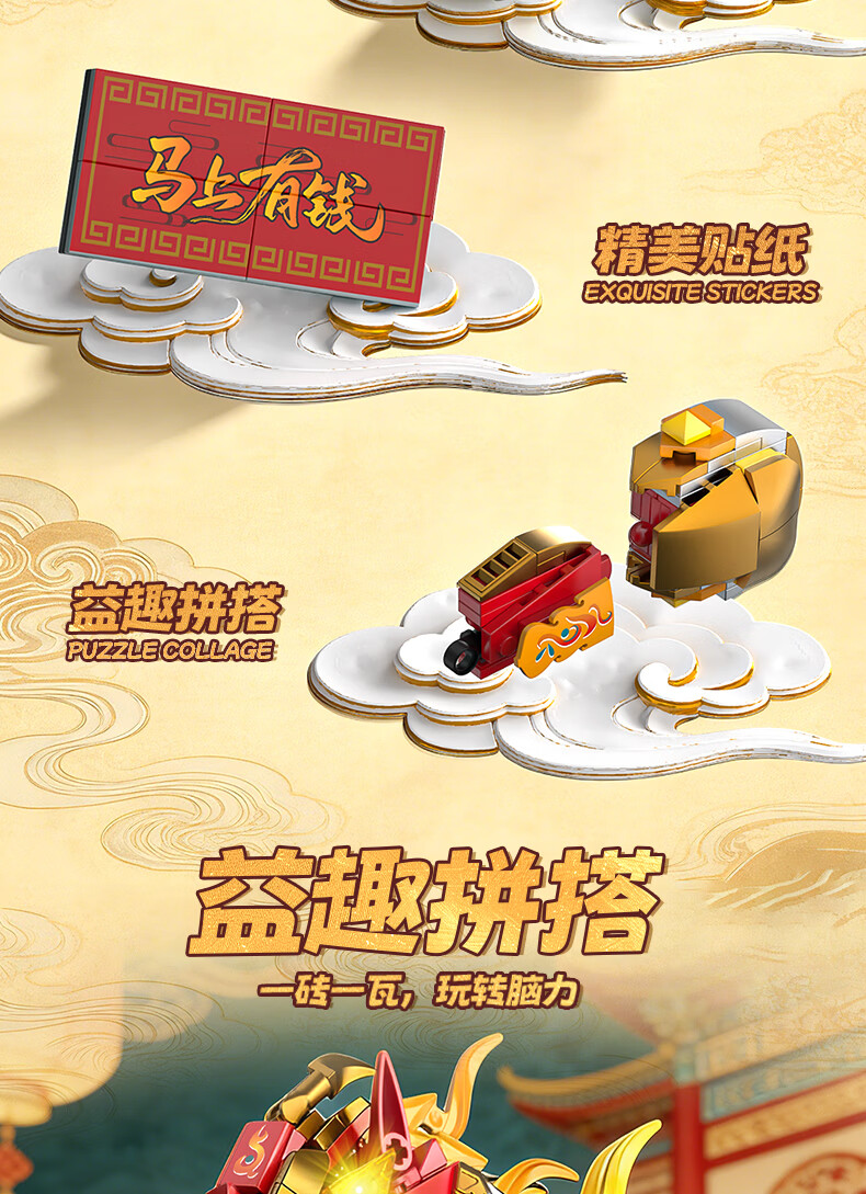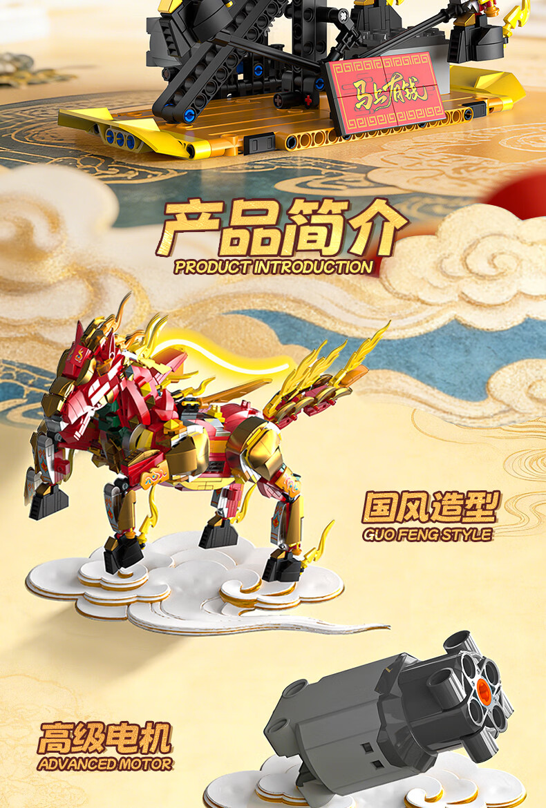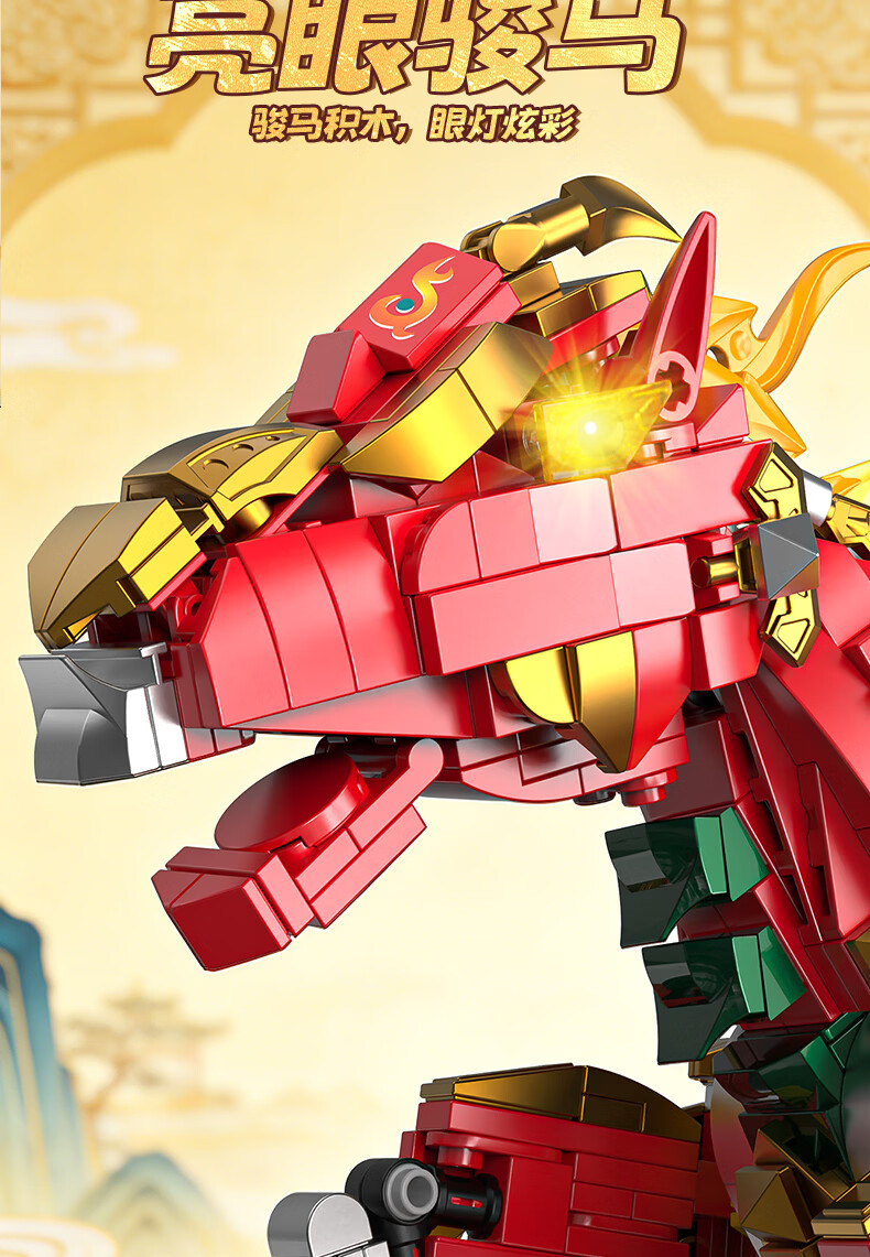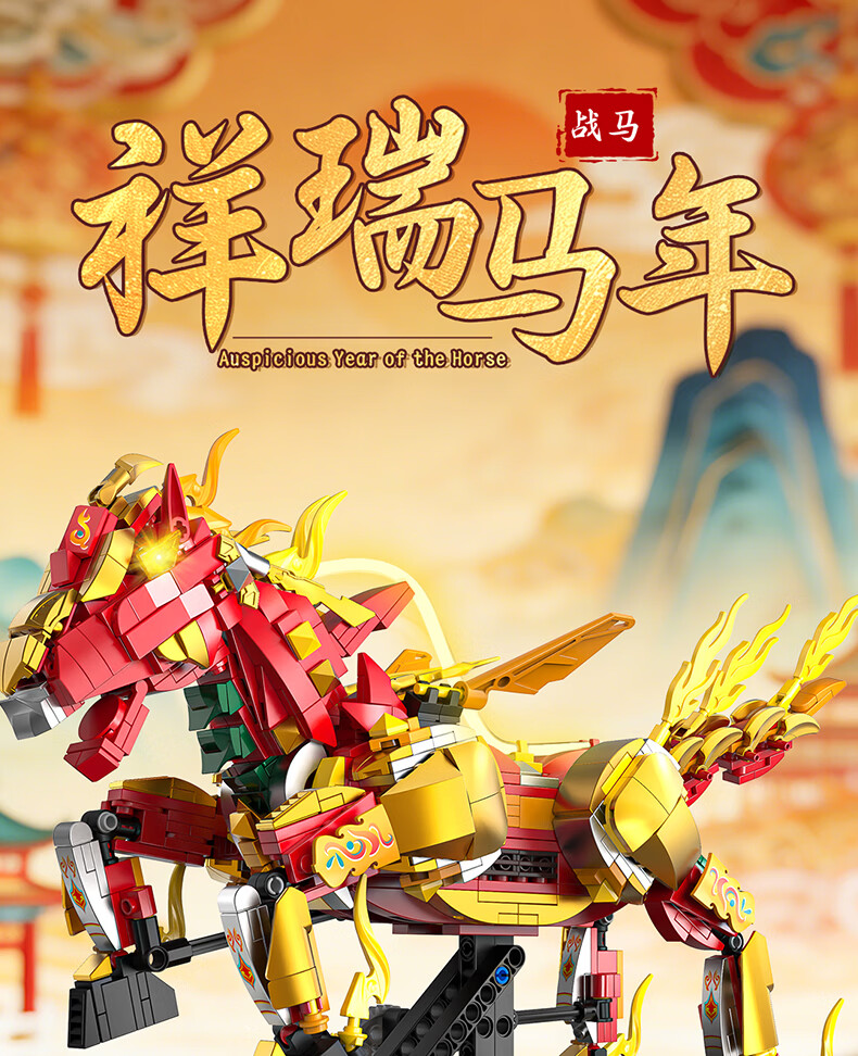 赟娅积木马年国潮中国风儿童3-6岁男孩6-12岁玩具生日新年礼物 马年积木【瑞祥马年】942PCS