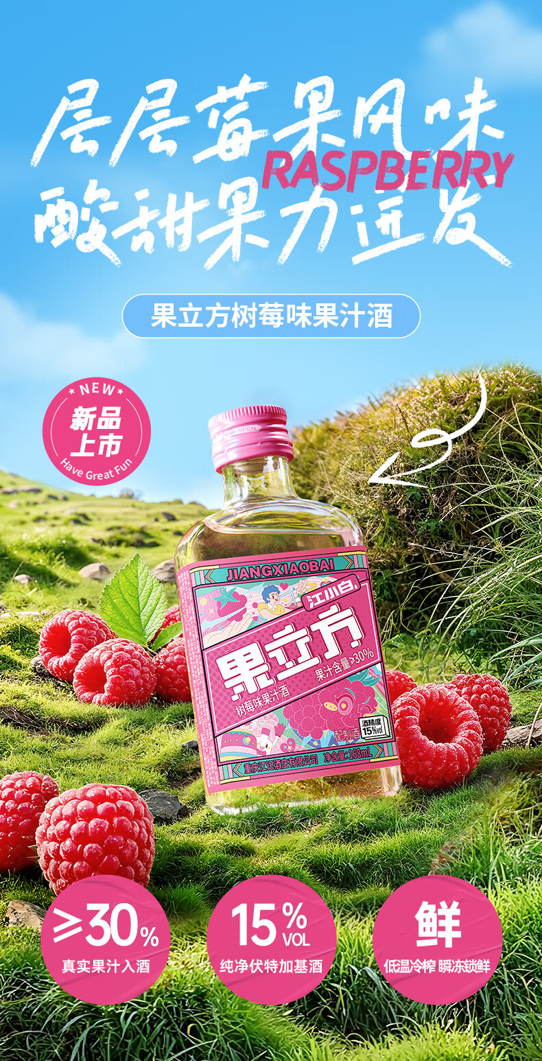 江小白果立方果汁酒15-23度果酒树莓味蜜桃味 低度微醺水果酒节日送礼 树莓味+蜜桃+葡萄 168mL 3瓶 (尝鲜组合)