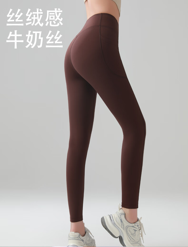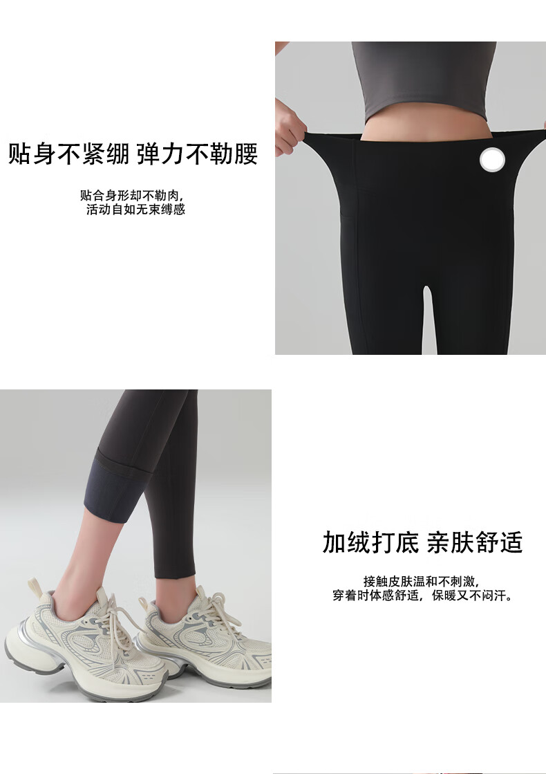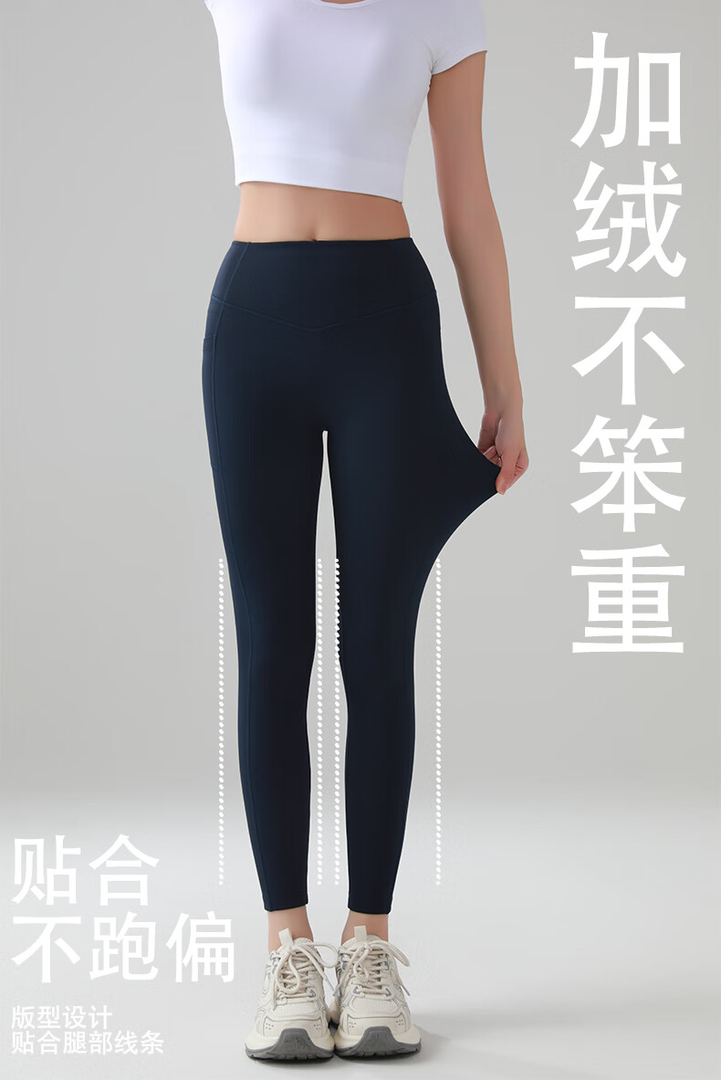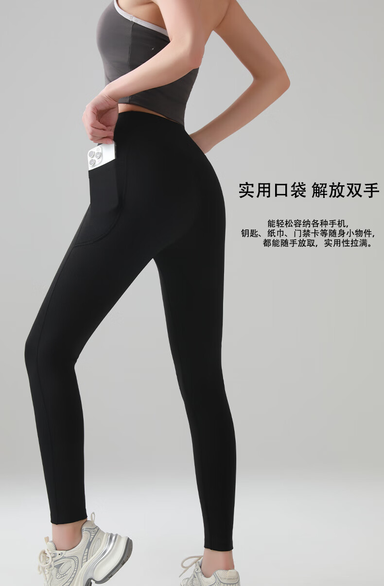 猫人口袋鲨鱼裤女秋冬磨毛外穿2025新款高腰提臀健身瑜伽打底裤 黑色 XL 建议体重125-140斤