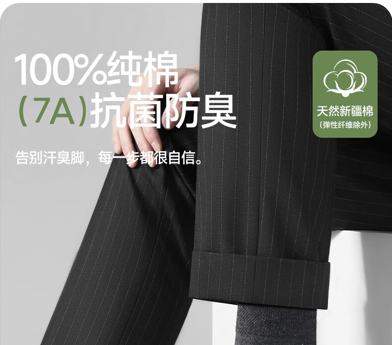 七匹狼袜子男袜7A抗菌纯棉花纱防臭袜透气休闲袜中筒袜6双装 混色1