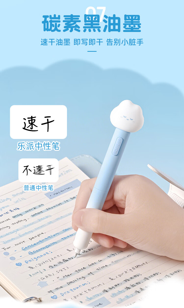 LOPET按动笔ins高颜值小众中性笔0.5学生专用刷题笔创意按压笔黑色水笔速干签字笔圆珠笔2支/套LT-2099