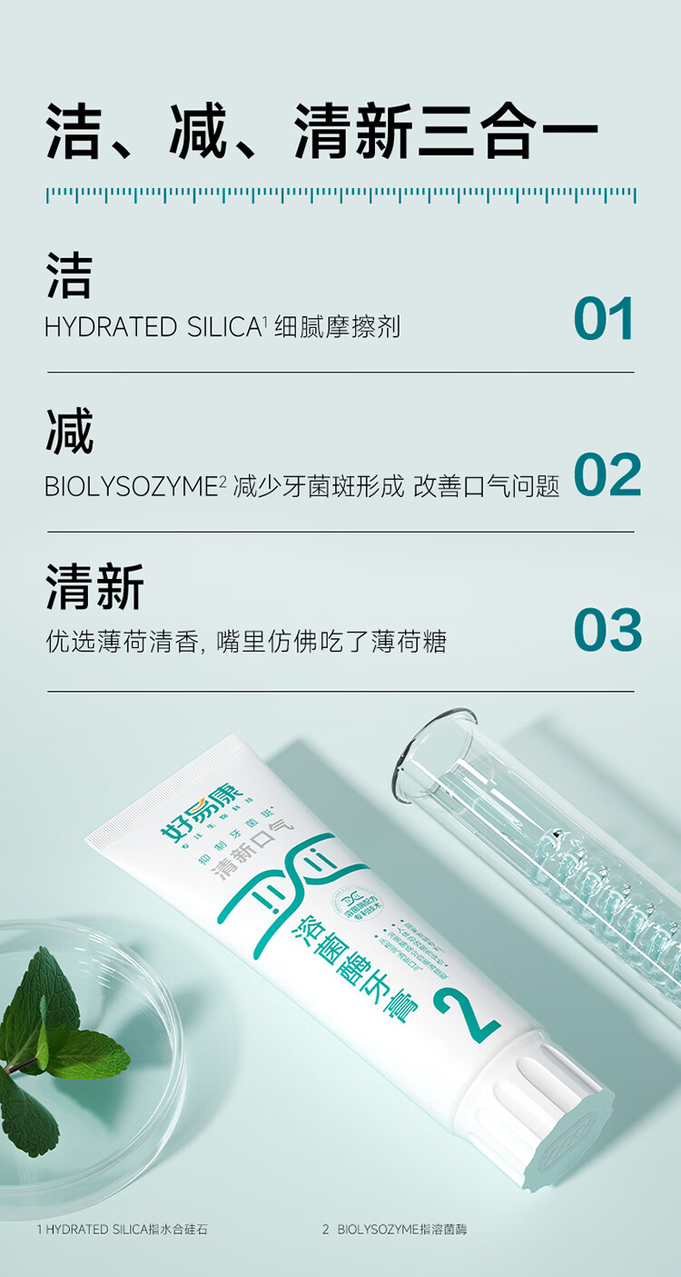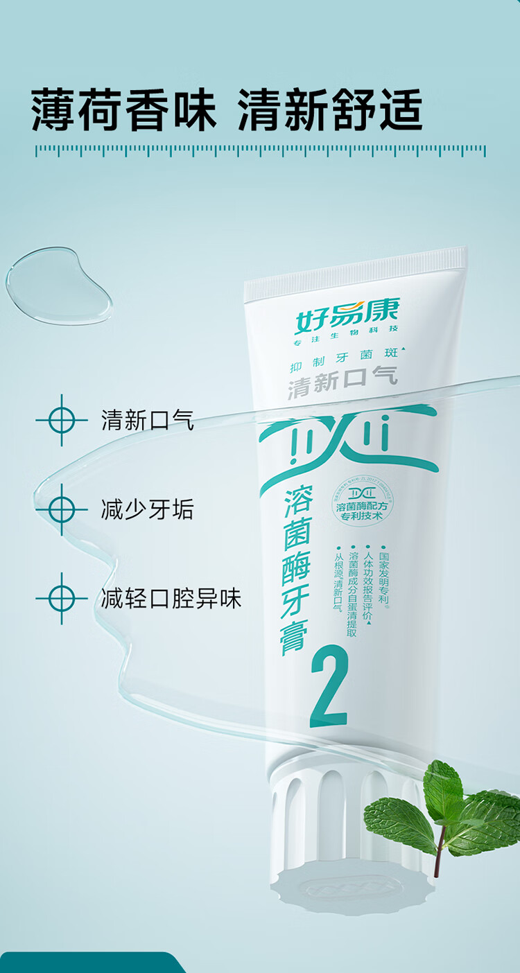好易康溶菌酶牙膏 清新口气减轻口腔异味 2号5支装【100g*5】