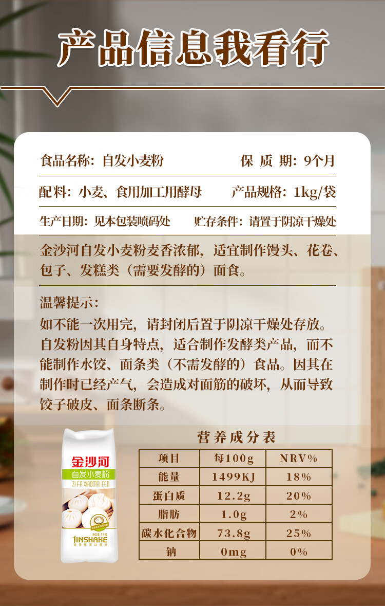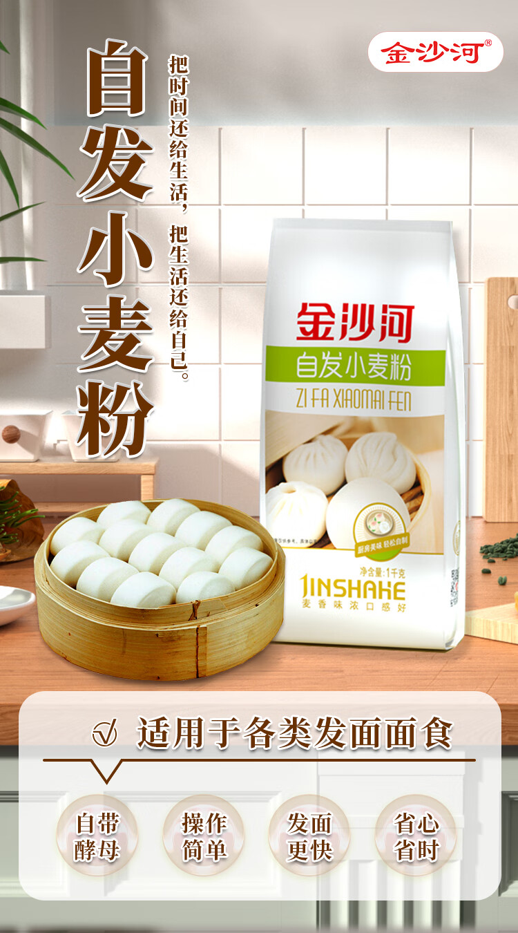 金沙河面粉 自发面粉含酵母加水自发酵 做馒头包子专用自发小麦粉2斤