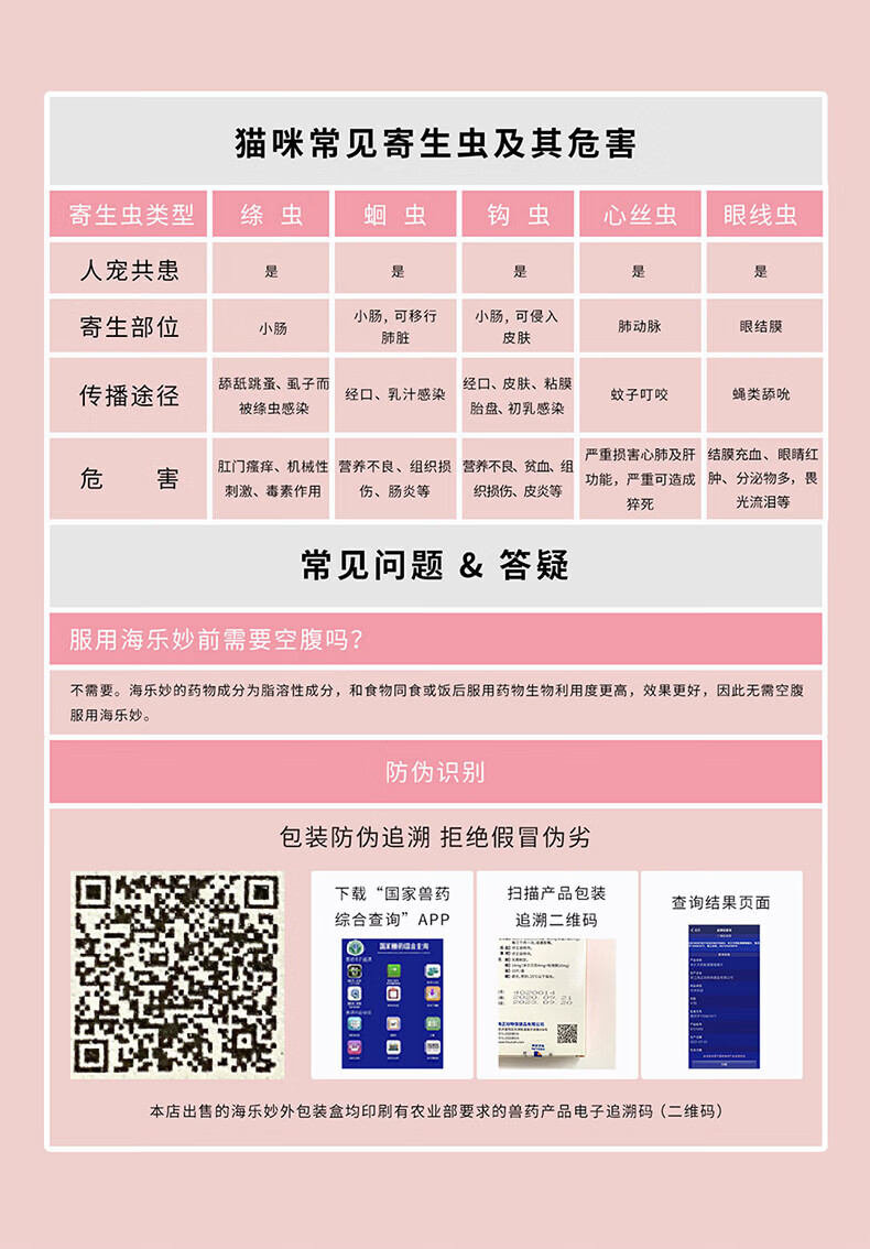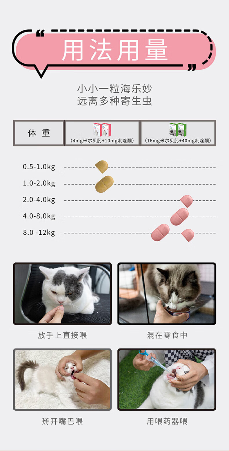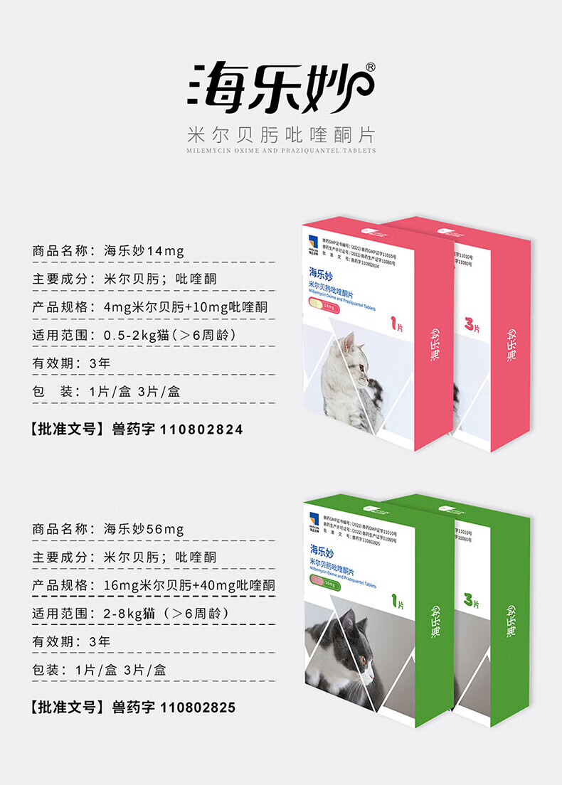 海乐妙猫咪体内驱虫药2-8kg(三片装)成猫打虫药防治寄生虫猫用