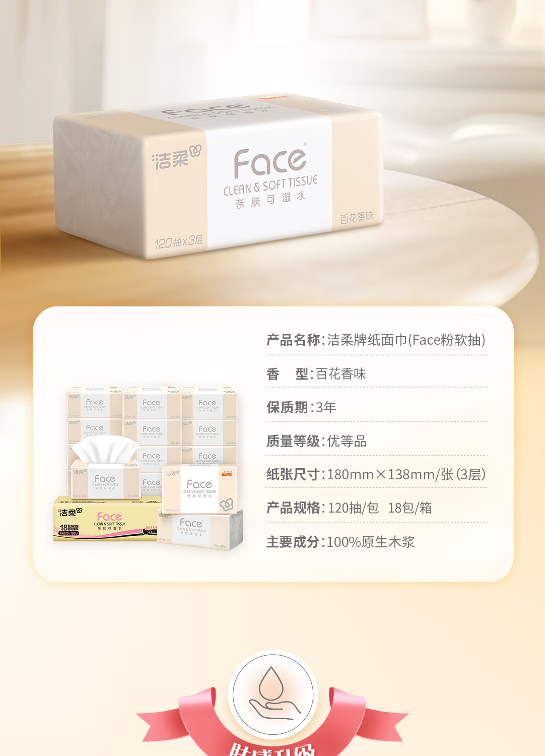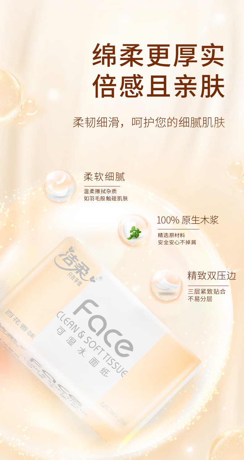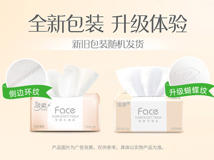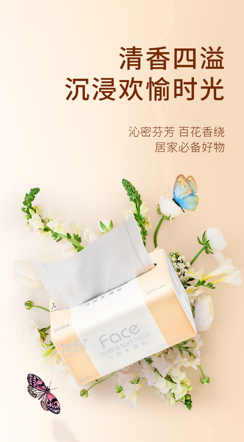 洁柔抽纸 粉Face柔韧3层120抽*18包 面巾纸 百花香芬 整箱卫生纸纸巾