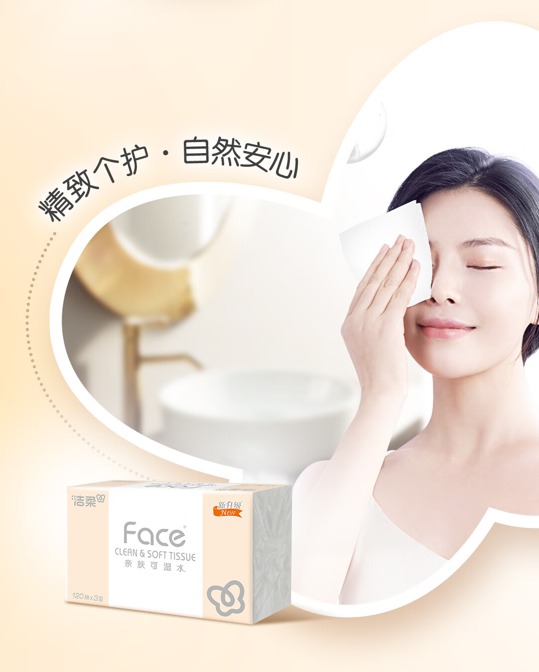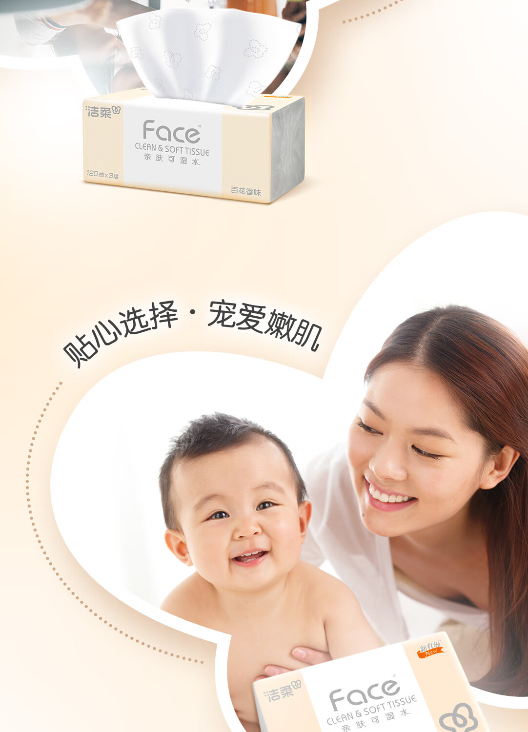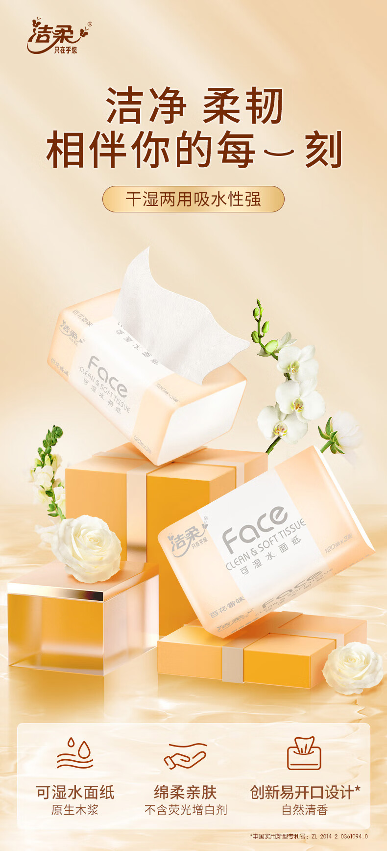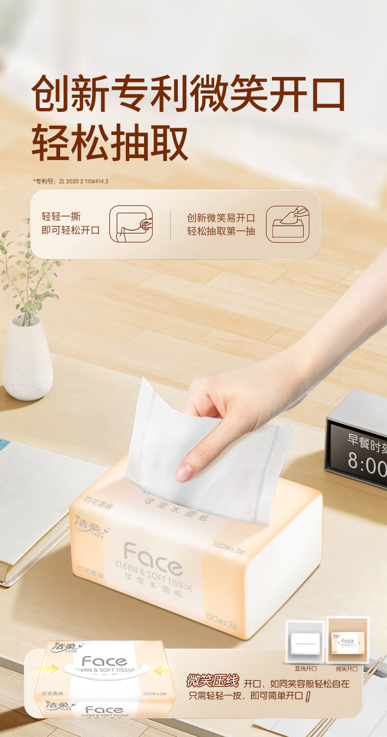 洁柔抽纸 粉Face柔韧3层120抽*18包 面巾纸 百花香芬 整箱卫生纸纸巾