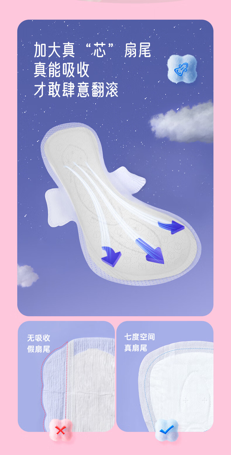 七度空间优雅卫生巾棉柔超薄透气超长夜用姨妈巾338mm8片【新国标认证】