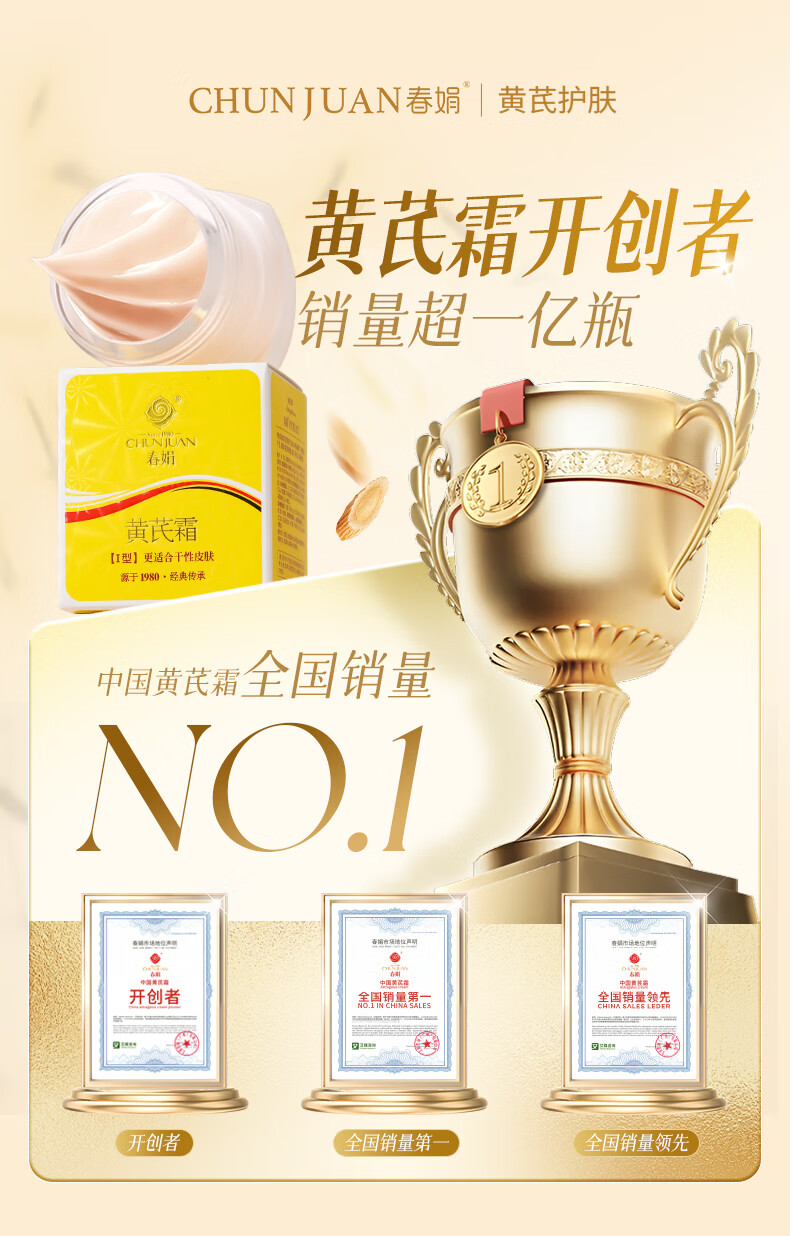春娟黄芪霜提亮肤色改善暗沉补水保湿滋养经典老国货护肤男女士面霜 清爽型30g(油皮/混油皮&夏季)