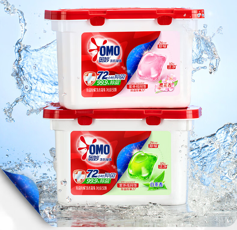 奥妙除菌洗衣凝珠白茶50颗 除菌除螨 柔顺留香 三合一浓缩