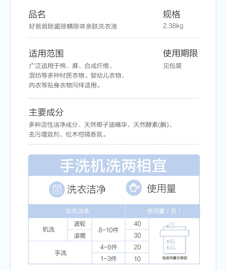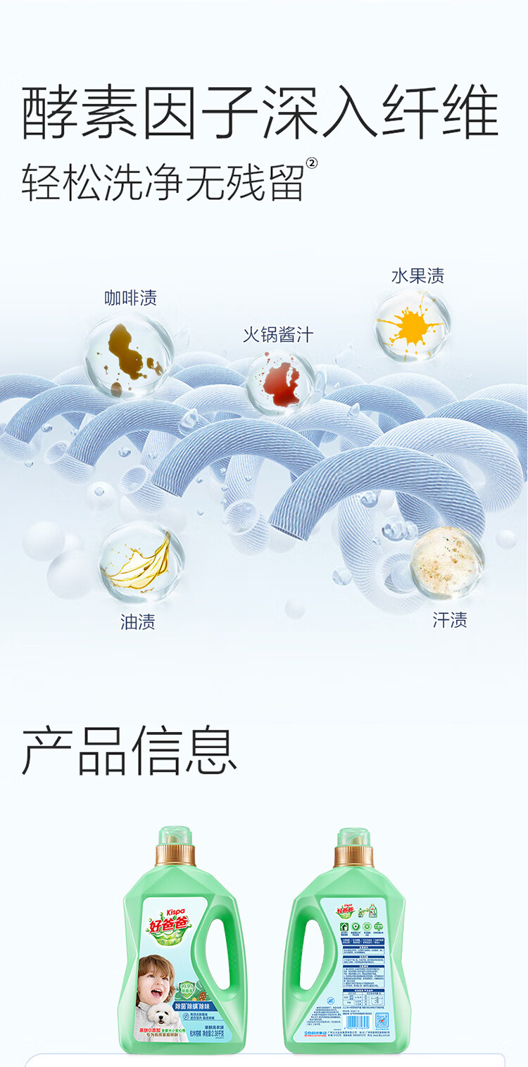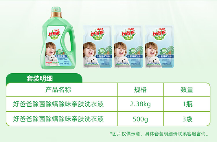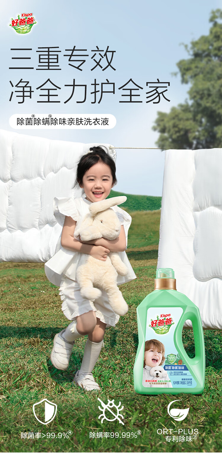 好爸爸(Kispa)除菌除螨除味洗衣液7.76斤套装 亲肤配方无刺激 99.9%除菌