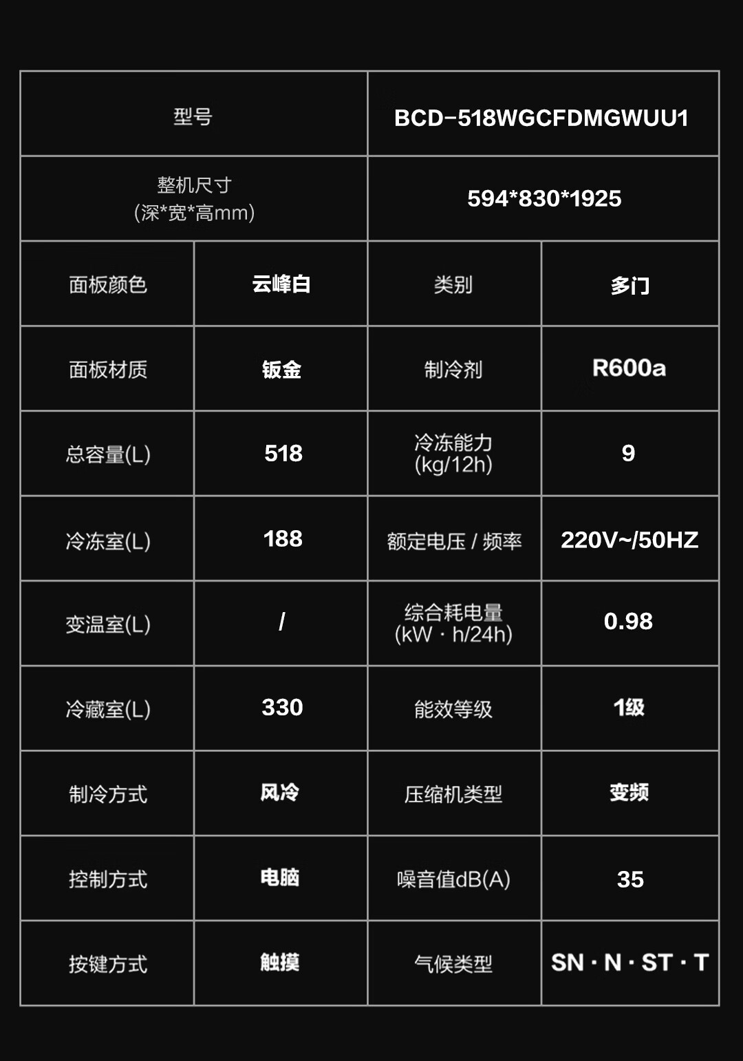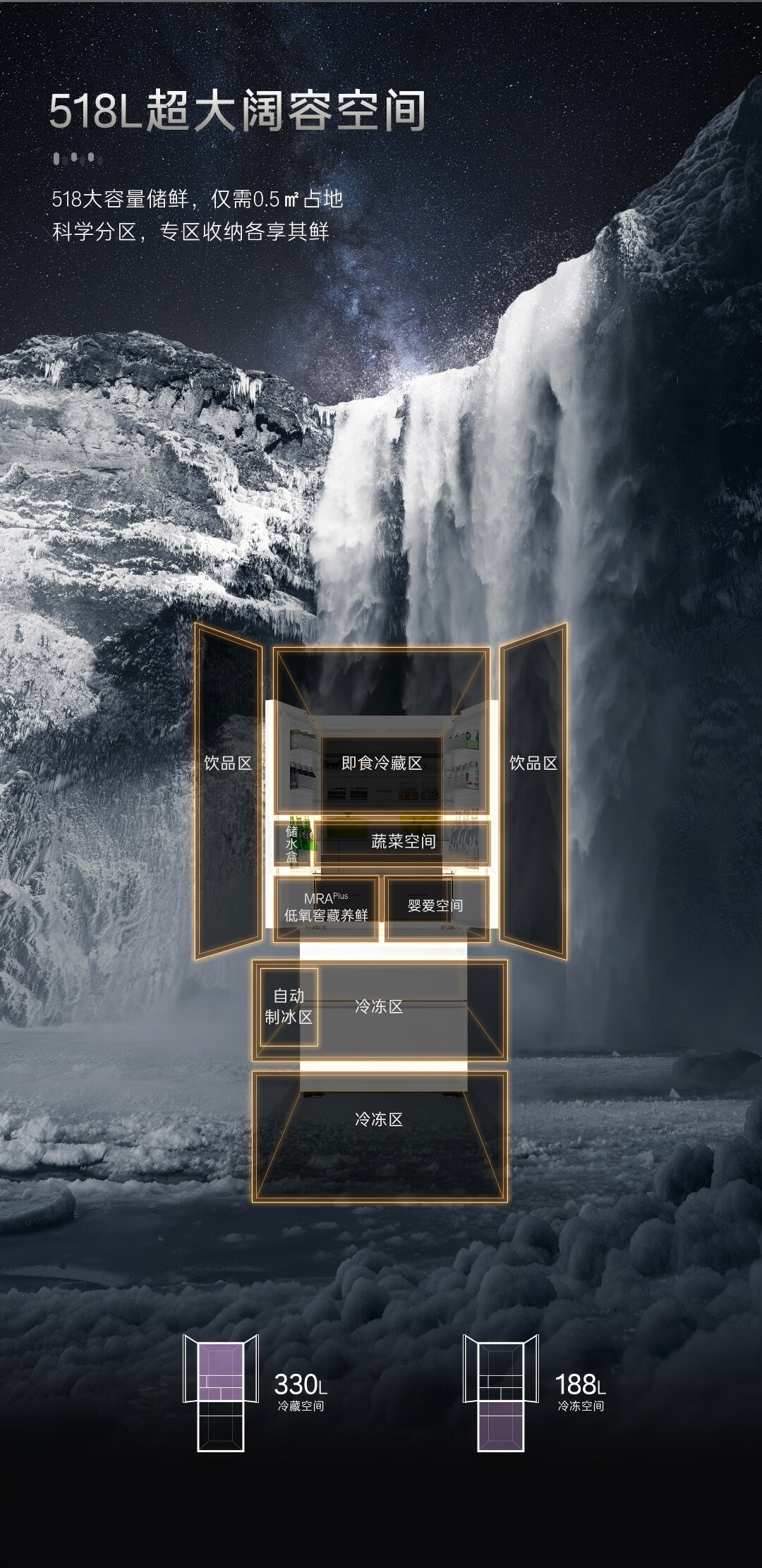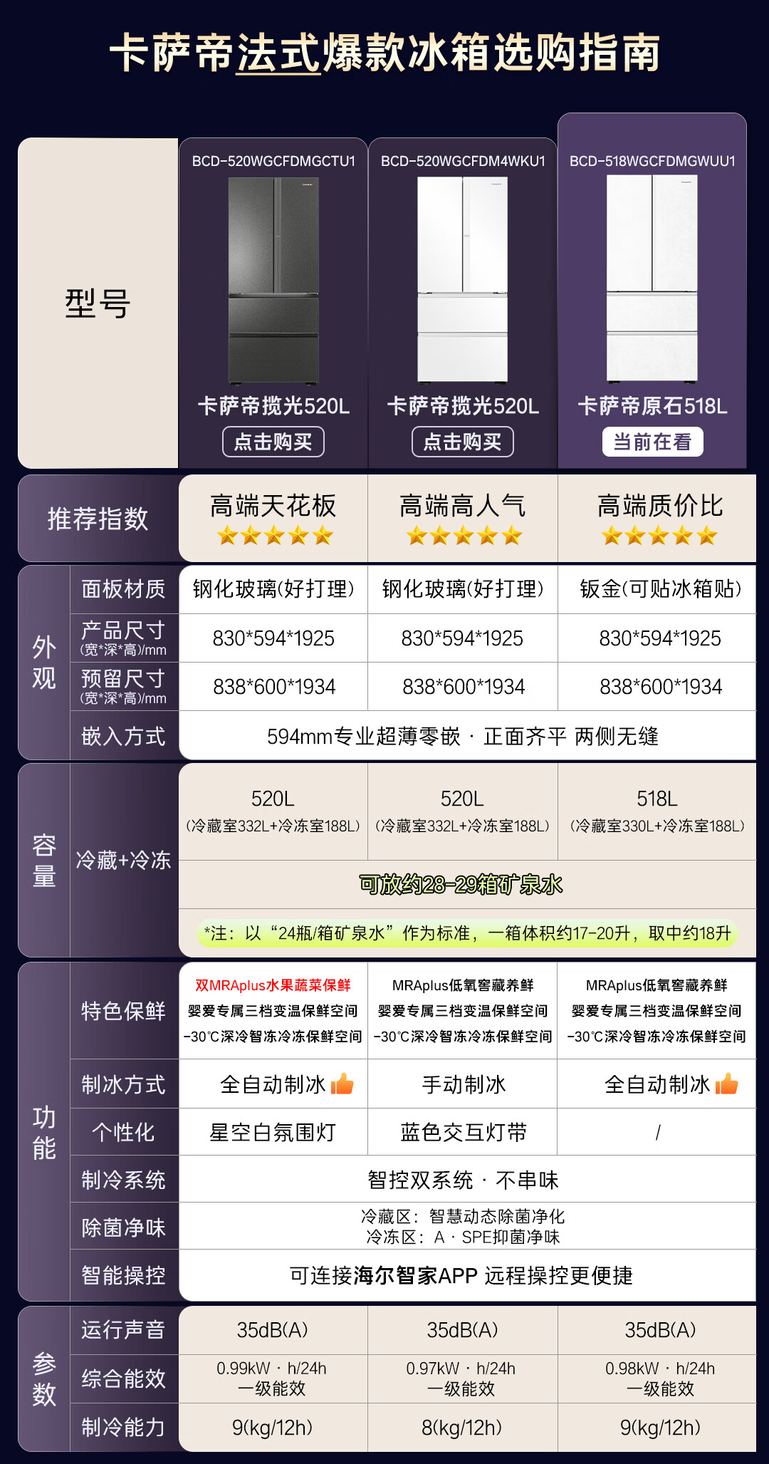 卡萨帝(Casarte)原石518L法式多门冰箱MRA PLUS低氧窖藏养鲜自动制冰双系统BCD-518WGCFDMGWUU1 517同款国家补贴