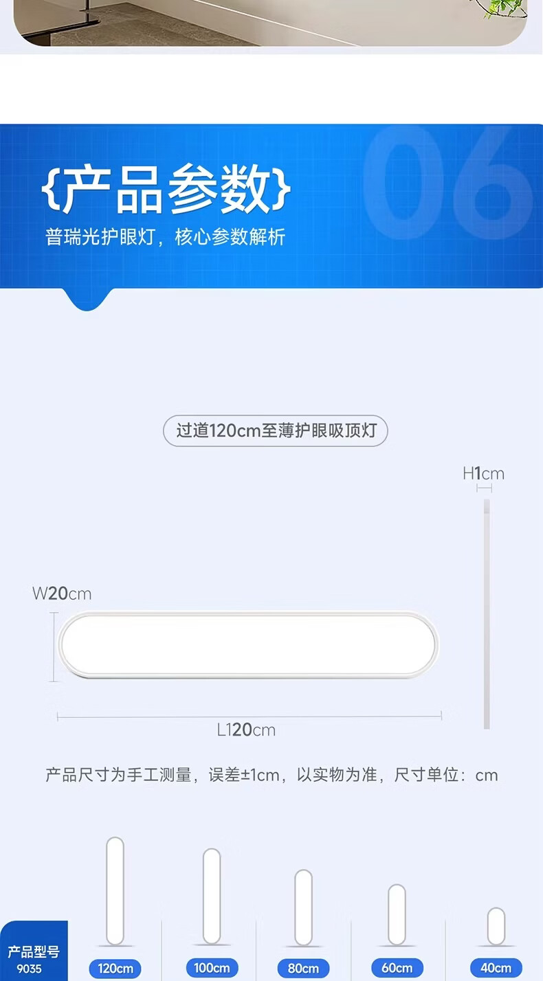 拉伯塔全光谱超薄长条吸顶灯护眼过道走廊阳台灯无缝隙极简衣帽间卧室灯 退 【超薄1CM】原厂普瑞灯珠