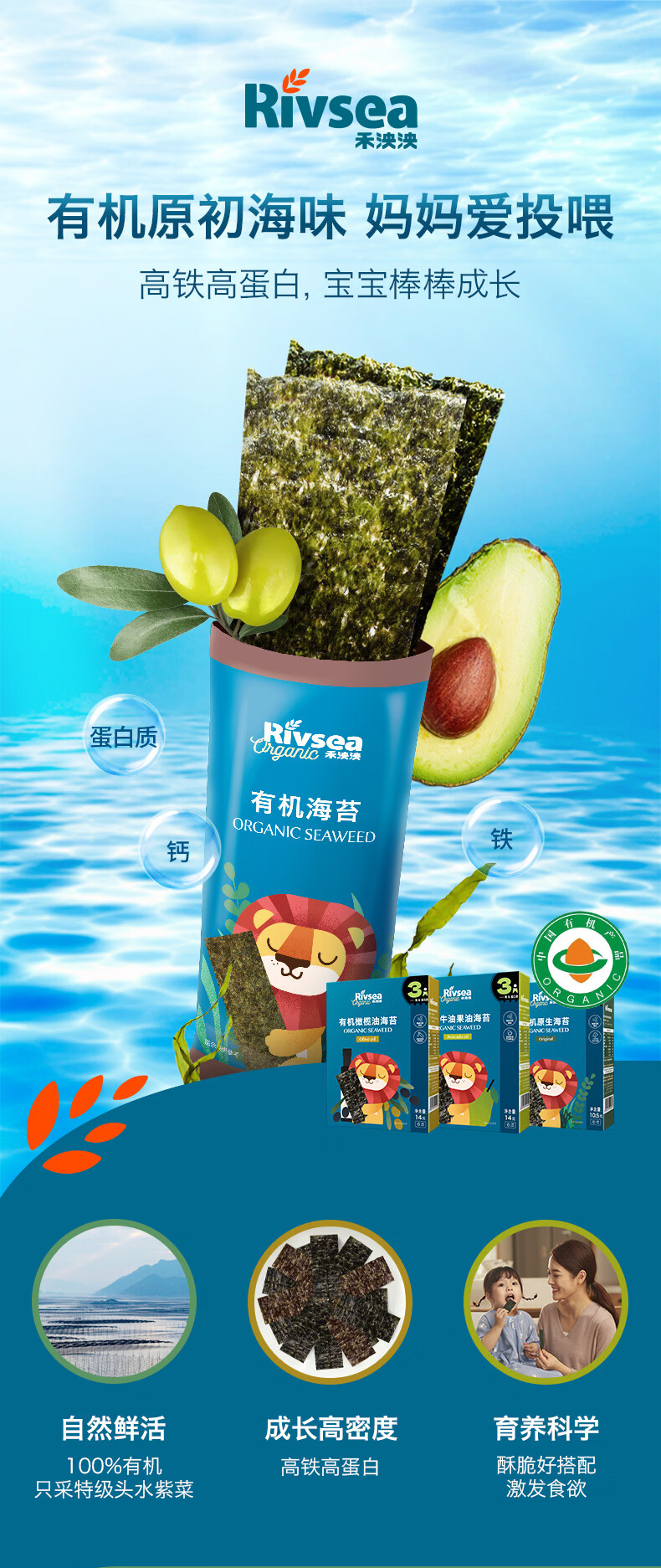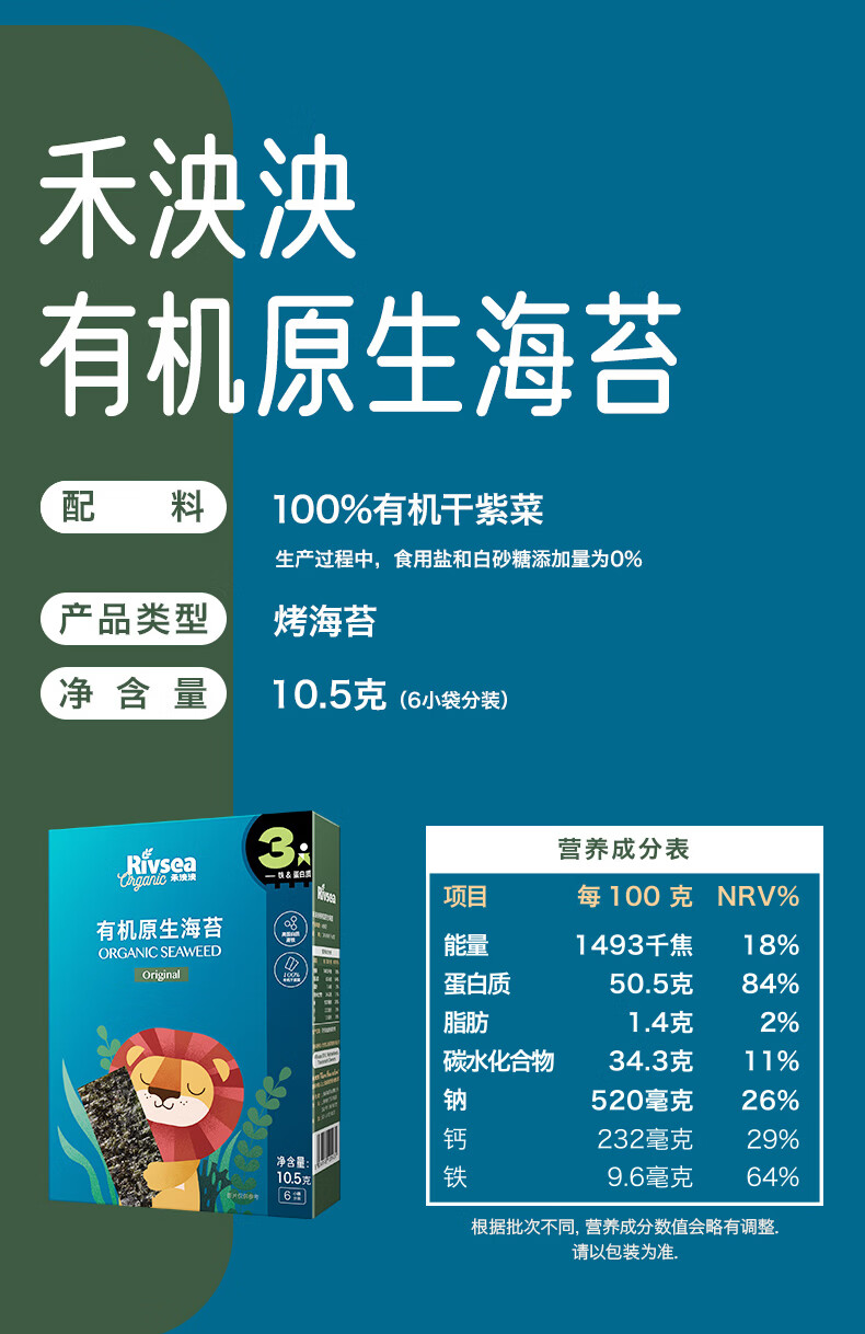 禾泱泱有机原生海苔片原味10.5g 儿童宝宝零食出游小零食无添加食用盐