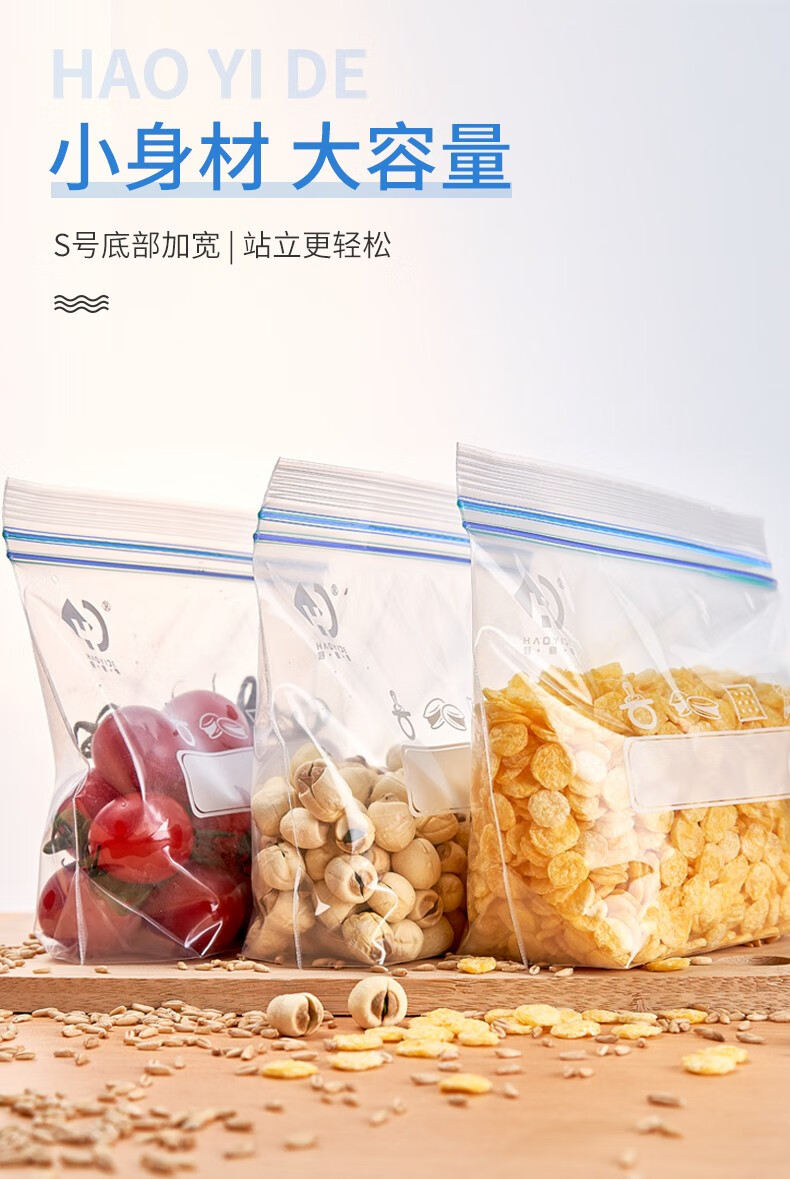 好易得 食品密封袋冰箱食品分类收纳食品保鲜密实袋 坚果防潮辅食分装 大号+中号+小号共90只