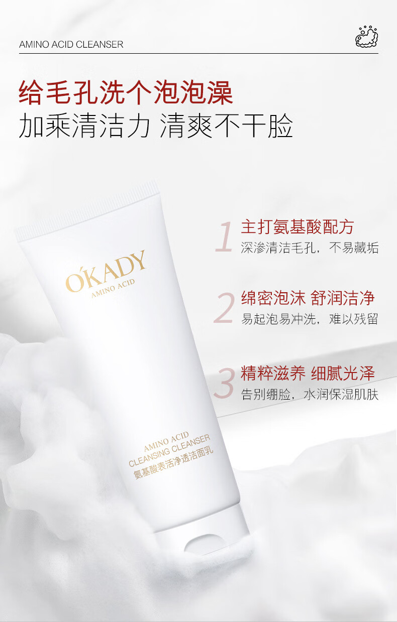 欧佩男女通用洗面奶氨基酸表活净透洁面乳清洁乳易清爽舒畅温和净颜