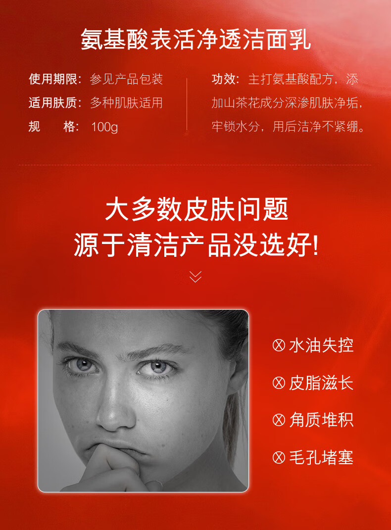 京润珍珠(gNPearl)珍珠氨基酸净颜洁面乳清洁去油去污不刺激温和洗面奶 氨基酸净颜洁面乳100g*2支