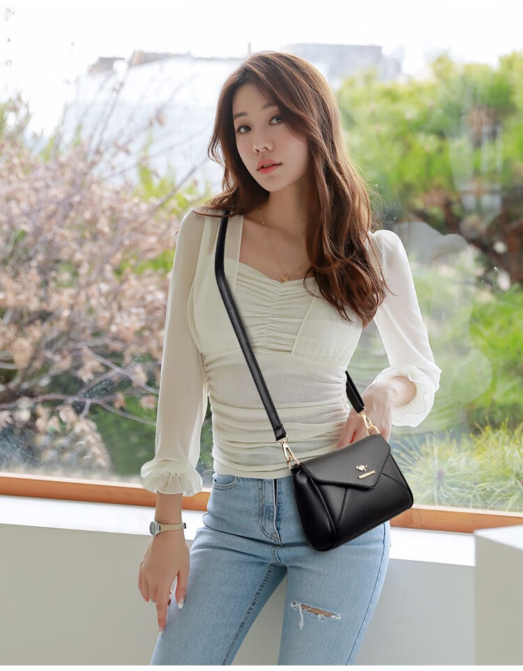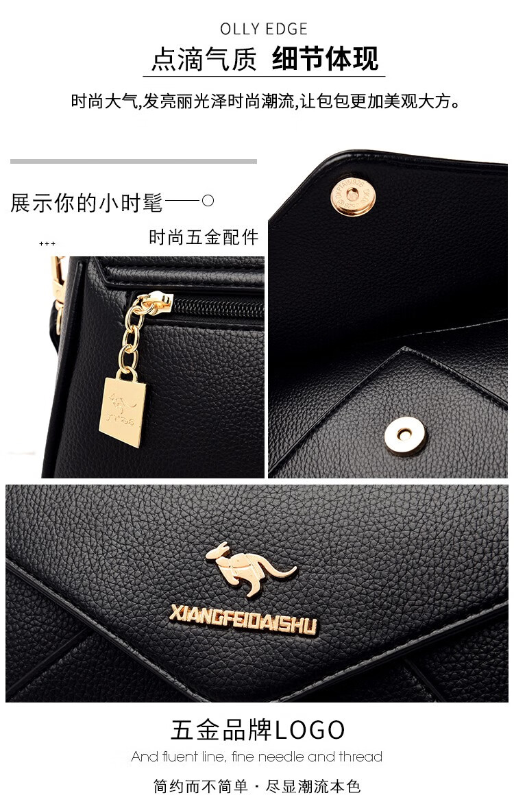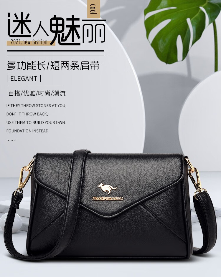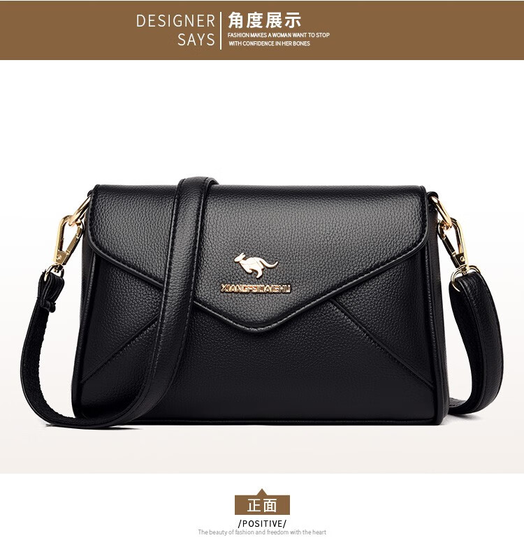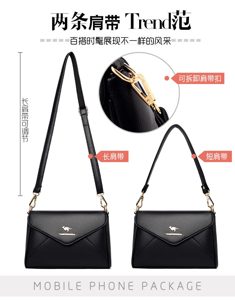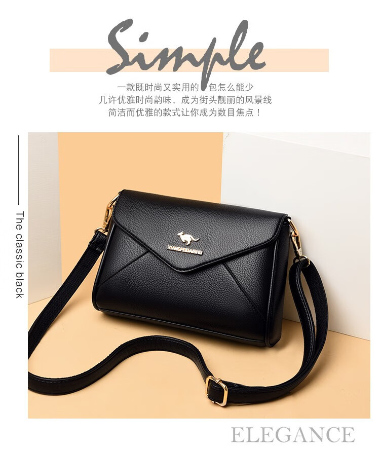 玫瑰袋鼠轻奢品牌软皮包包2026七夕礼物中年妈妈女士单肩斜挎包时尚百搭新 黑色