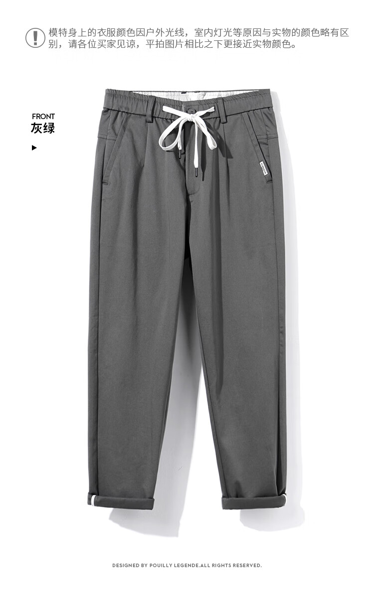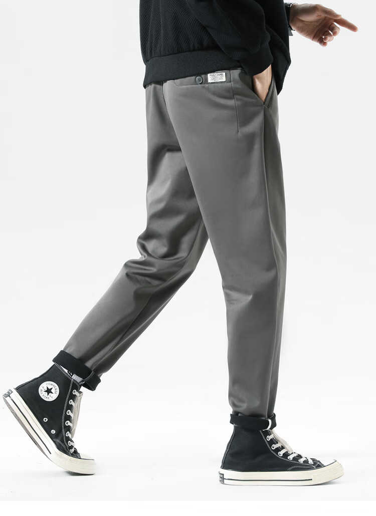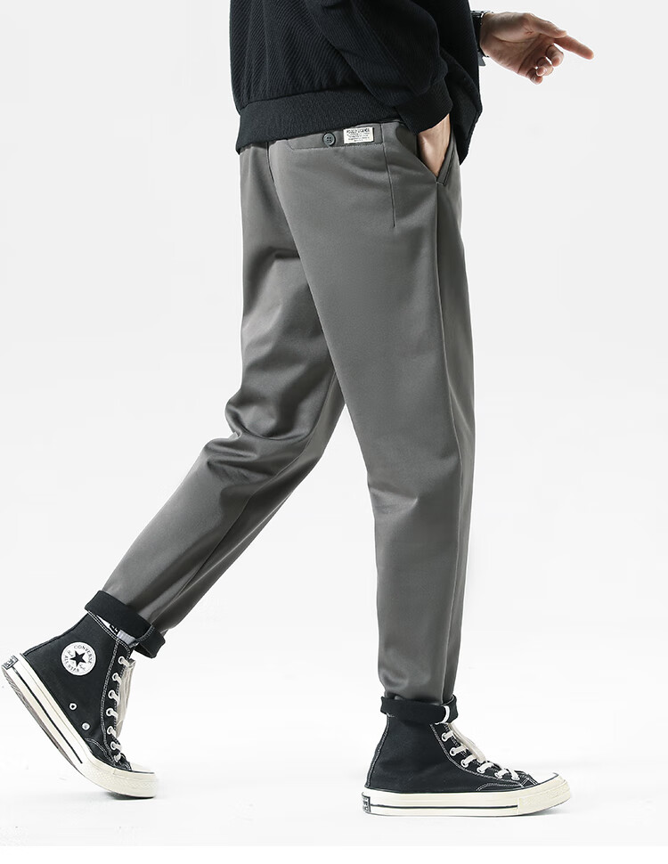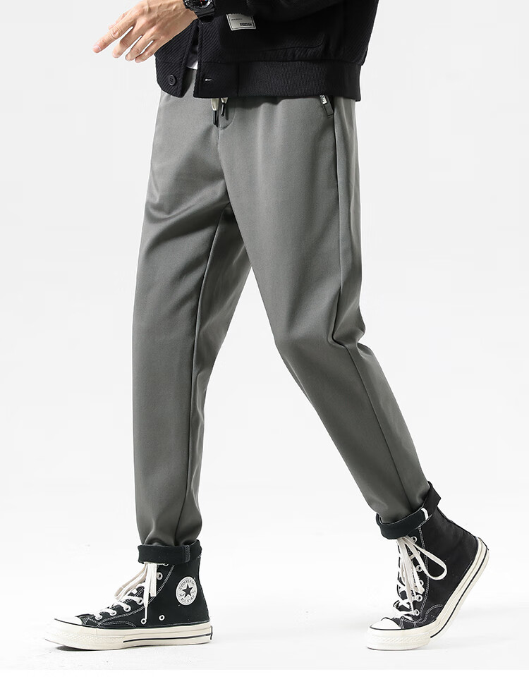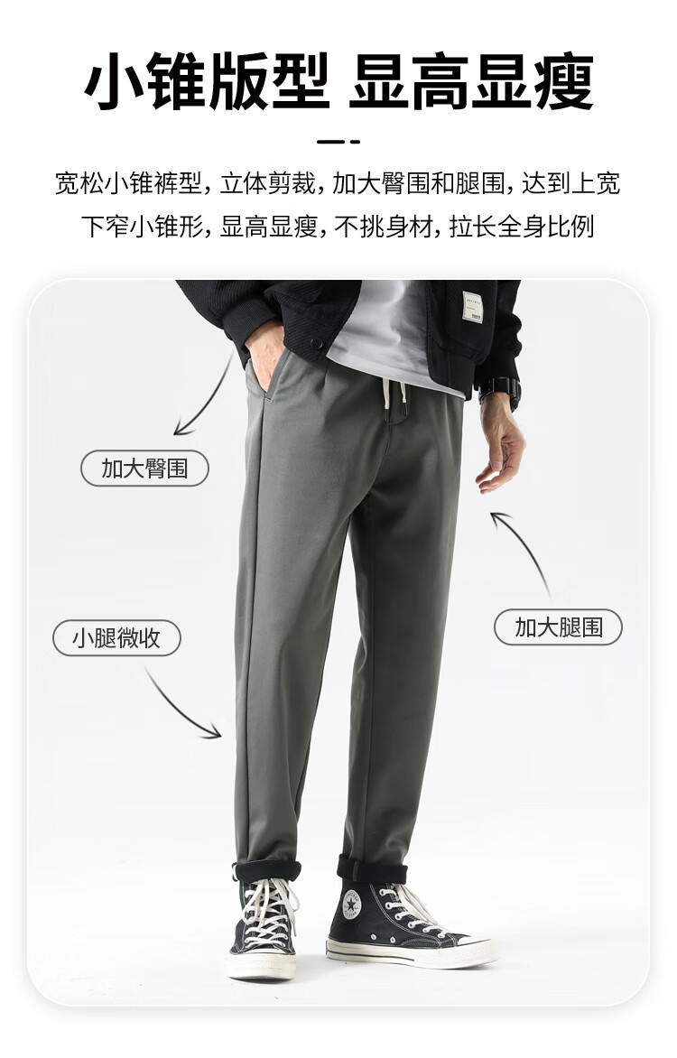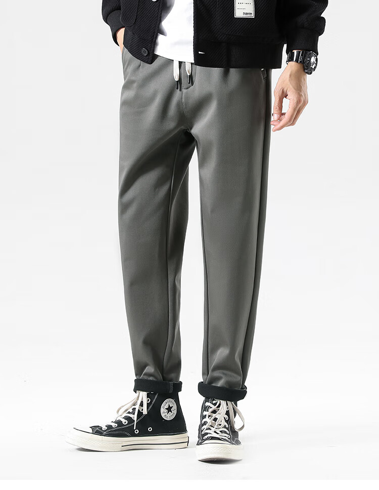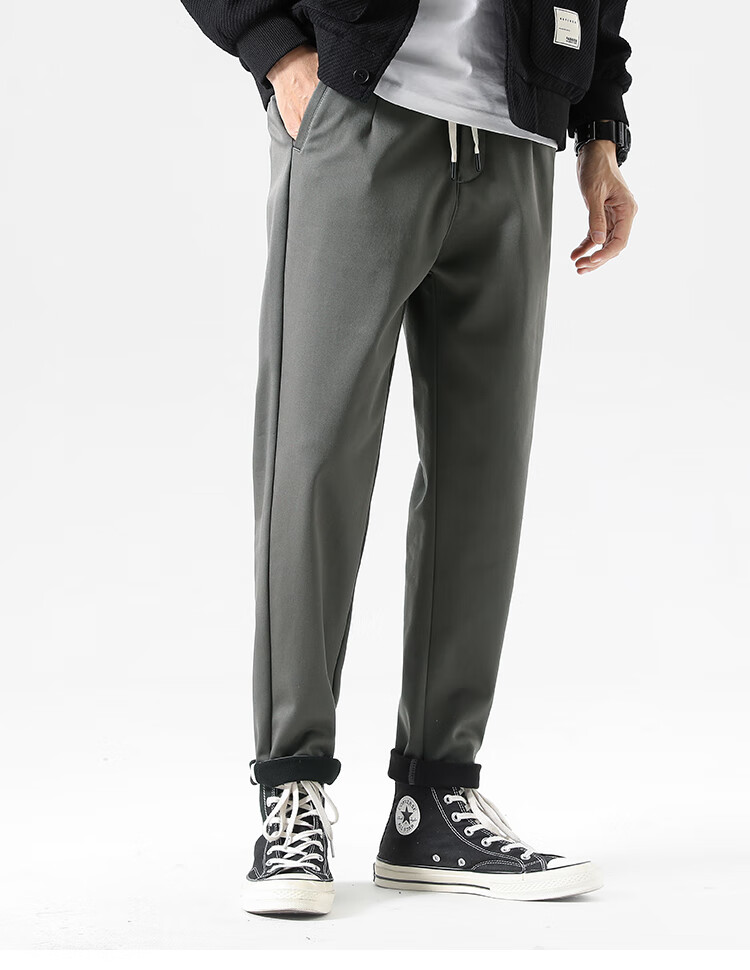 布衣传说自由弹记忆棉磨绒加厚休闲裤男宽松直筒长裤男潮流百搭裤子男 灰绿 31