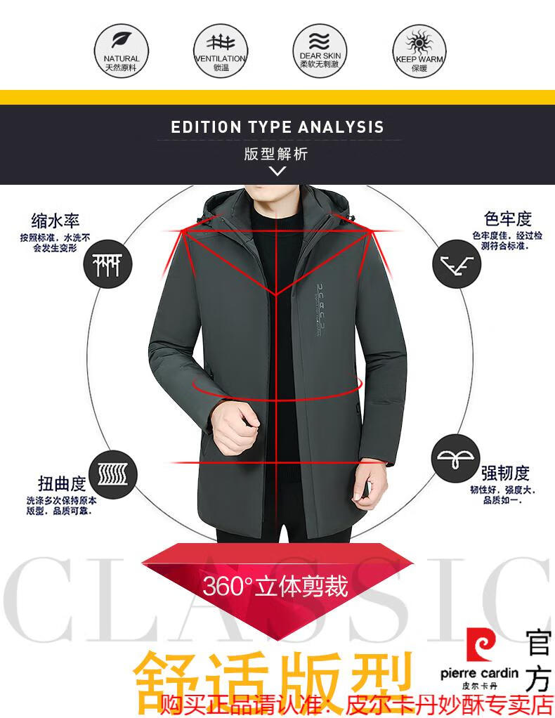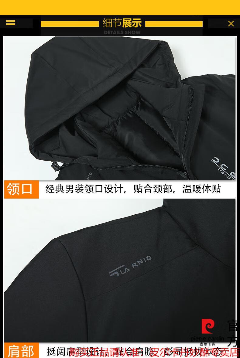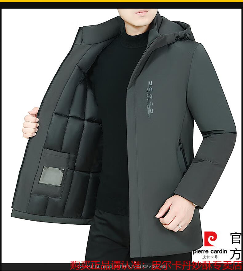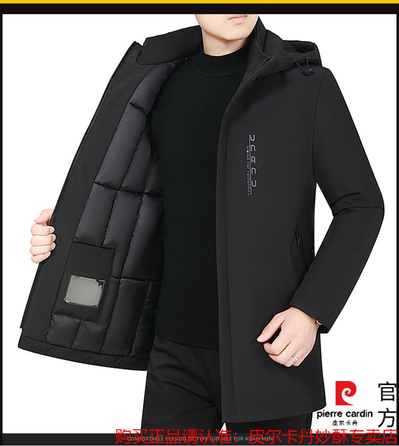 【暖冬焕新】皮尔卡丹中长款羽绒服男冬季保暖修身中年商务休闲加厚外套三防衣多穿连帽羽绒服男装冬装 黑色【2088】 L 16590/110斤