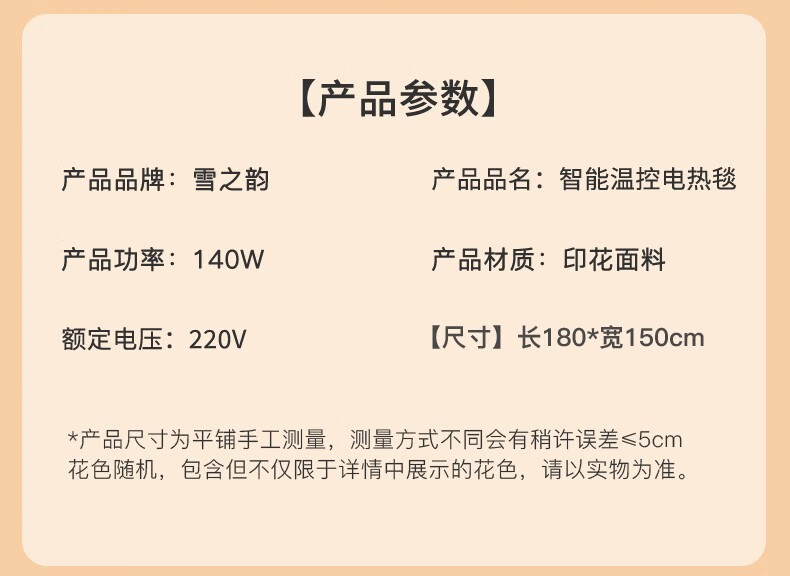 雪之韵 电热毯双人双控电褥子【1.8米x1.5米】智能双温定时(花色随机) 2025新款 智能双控(1.8米x1.5米)
