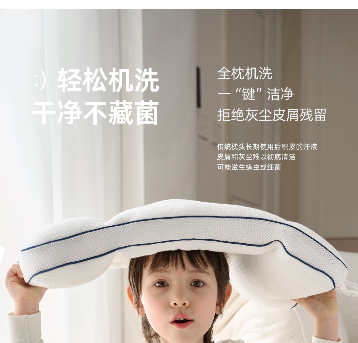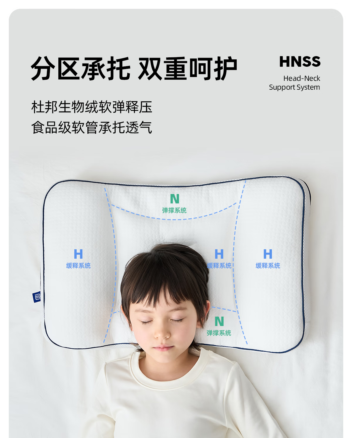 层舒儿童枕头宝宝分区护颈枕婴幼儿护脊四季通用可机洗幼儿园枕 浅粉色 单只 【1-3岁】双枕高