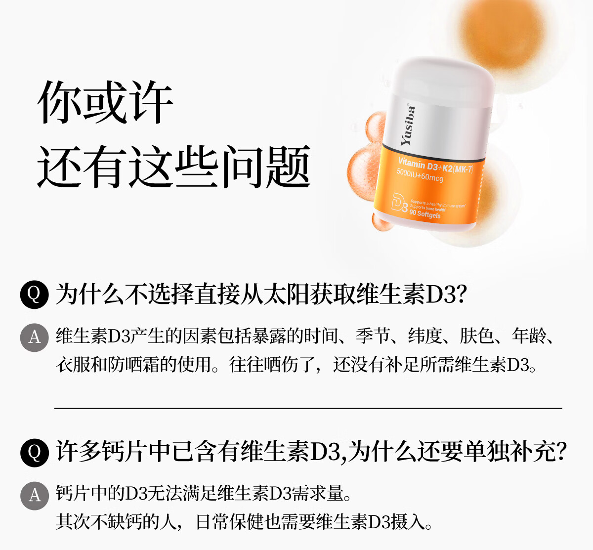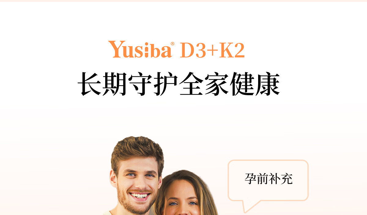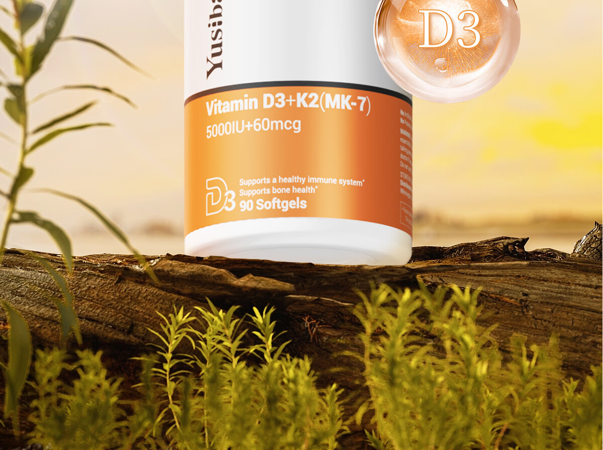 Yusiba5000iu维生素d3+K2领钙入骨 预防抽筋调节情绪 男女备孕成人补钙 新VD3+K2*1瓶 90片*1瓶
