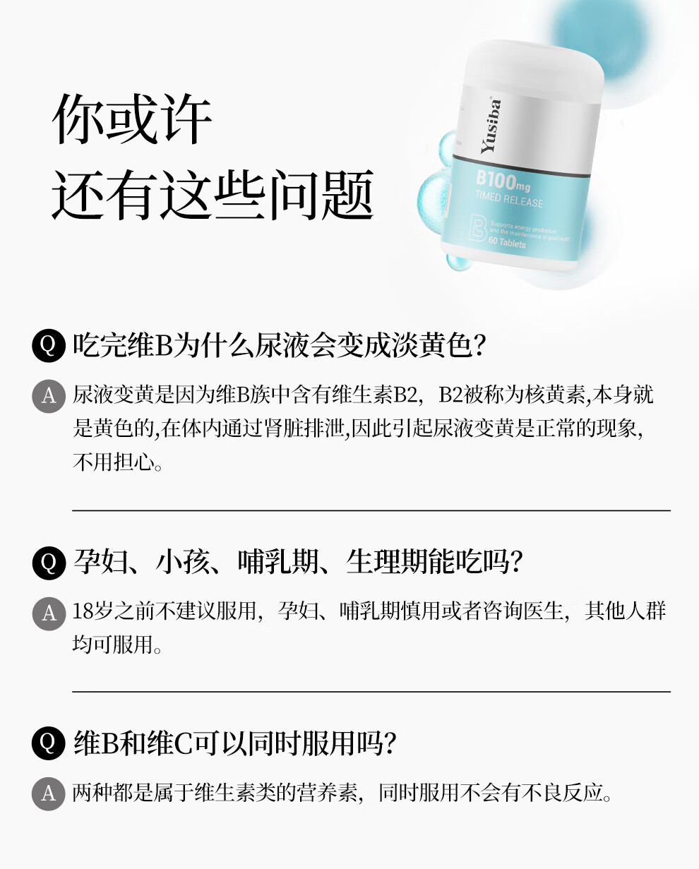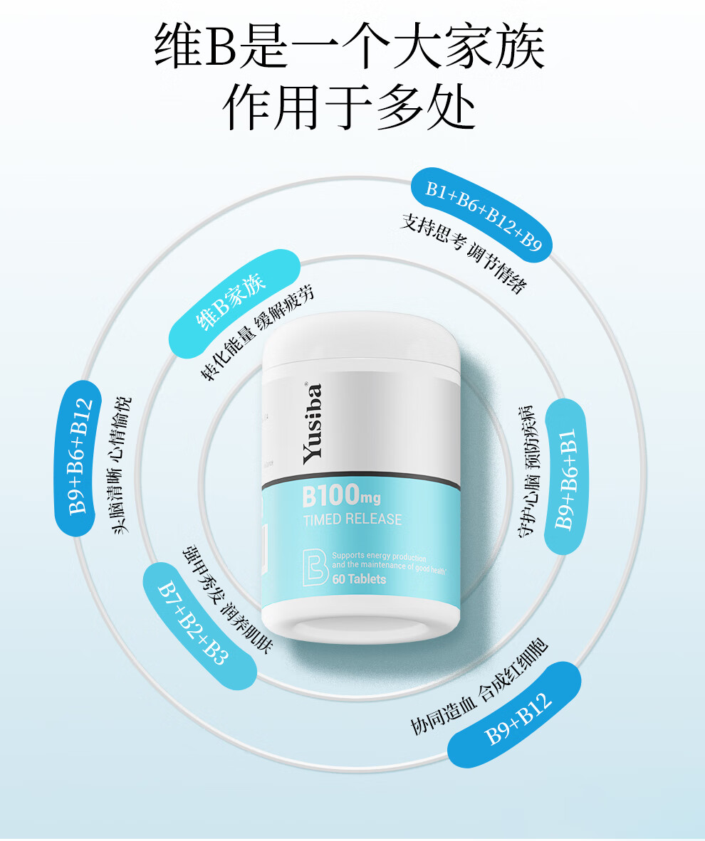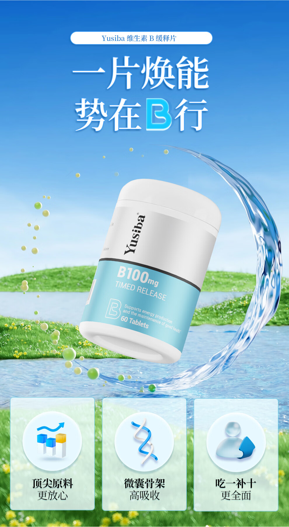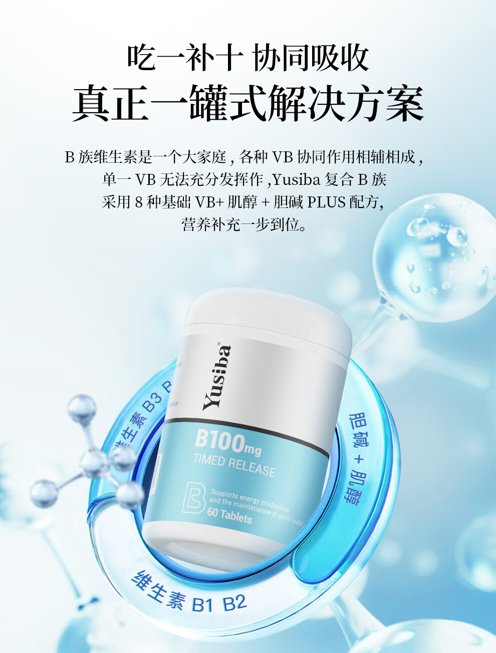 Yusiba御仕葆复合维生素b缓释100mg60粒肌醇胆碱促代谢熬夜常备提升精力 促代谢助塑形 60粒*1瓶 10种复合