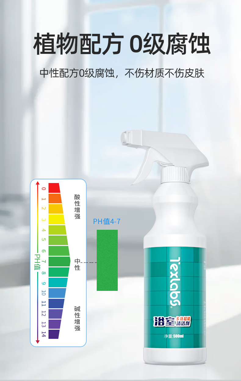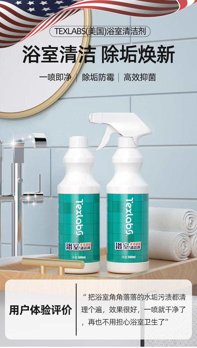 泰克斯乐(Texlabs)卫生间厕所玻璃水瓷砖地板清洗剂 500ml*3